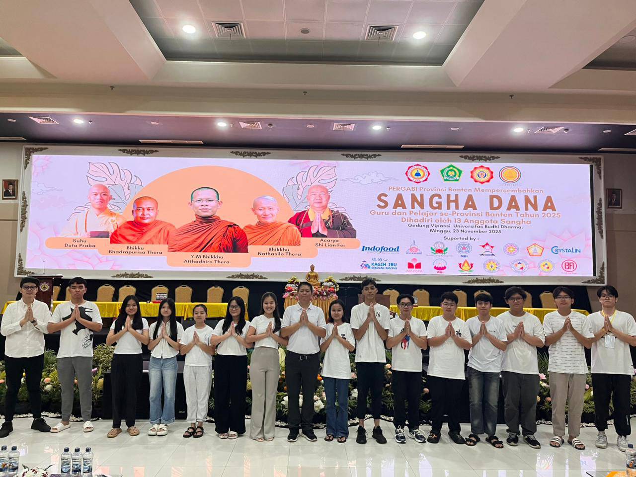 這種融合傳統教派的深入學習,在萬丹省(Provinsi Banten)其他宗教活動中亦是如此。在2025年11月23日,於丹格朗的佛教達摩大學(Universitas Buddhi Dharma),釋蓮飛上師與釋蓮轟教授師共同出席由萬丹省佛教教師協會(PERGABI)主辦的僧伽供養法會(Sanghadana)。活動中有來自南傳、北傳與密乘的13位僧伽成員參與,並匯聚萬丹省各佛教宗派的重要人士。來自全省各校、不同背景的佛教學生踴躍參加,據報名人數約達1,500人,顯示當今印尼社會對於具包容性與代表性的宗教培育空間有著高度需求。