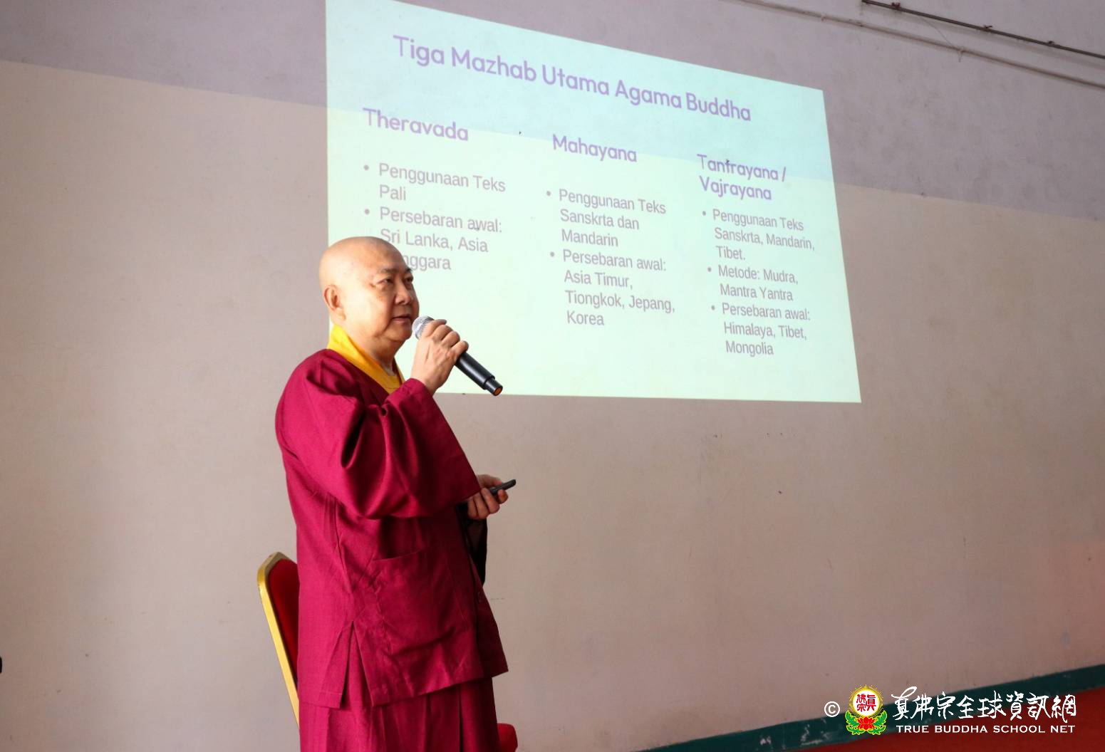 2025年12月17日(星期三),位於丹格朗(Tangerang)的民望學校(Sekolah Harapan Bangsa),佛教教育科教師特別邀請印尼真佛宗密乘僧團主席-釋蓮飛上師(Acarya Shi Lianfei)擔任主講人,為就讀國中至高中的學生舉辦了一場別開生面的佛法課程(Dharma Class)。