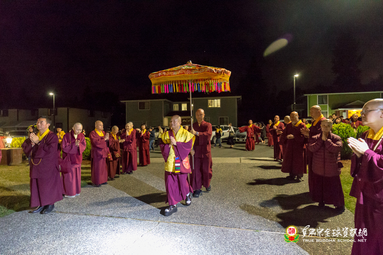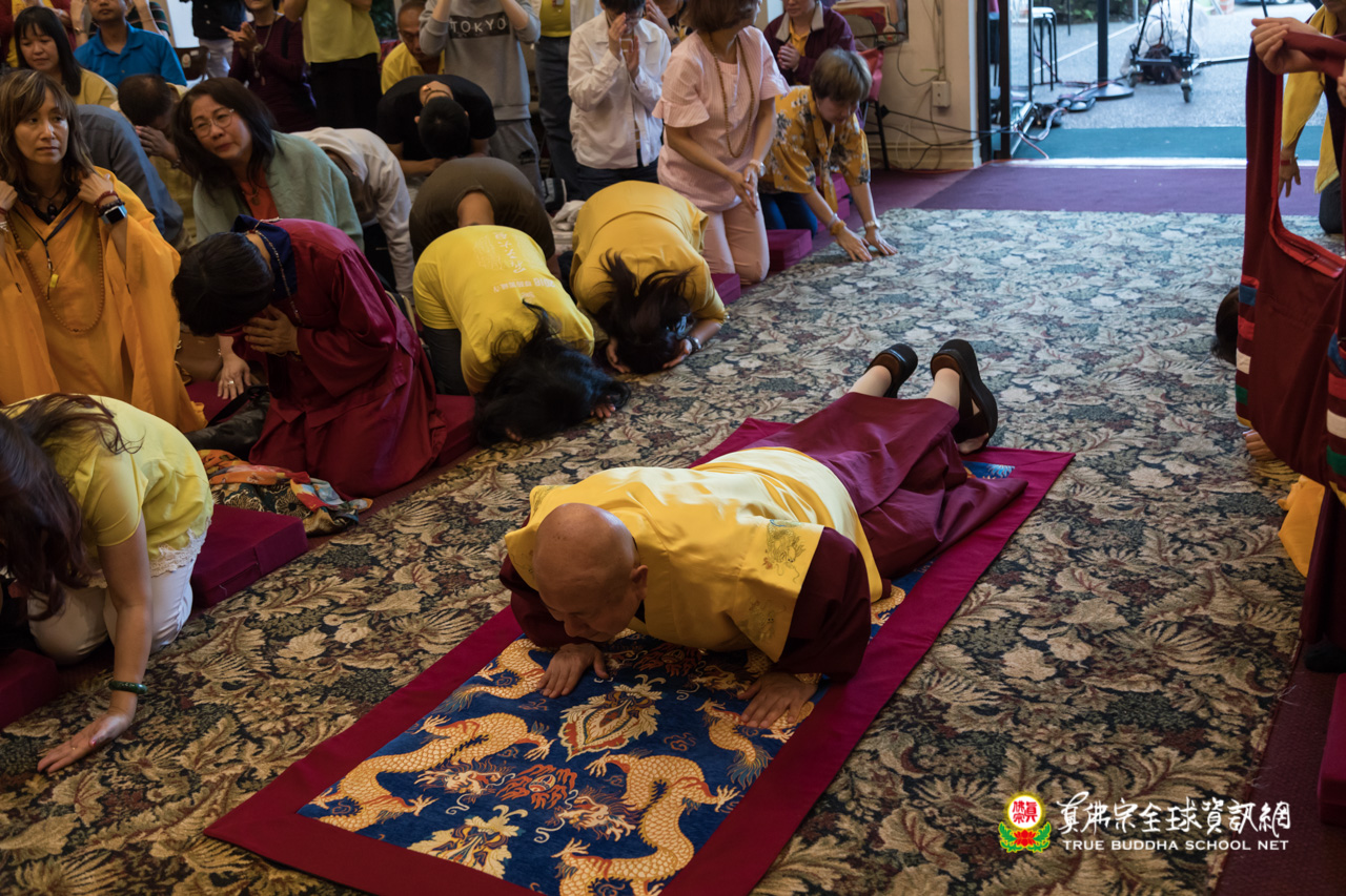 在精采的開示結束後,聖尊為多位信眾們賜授皈依灌頂,並加持大悲咒水、開光佛像。臨行前,聖尊依舊慈悲的為大眾摩頂加持。隨著莊嚴的送師隊伍,恭送聖尊回到了真佛密苑,弘法人員及弟子們,全體向根本上師跪拜頂禮佛足前,感謝聖尊的教導傳授。在溫柔的月光下,結束這法益充盈的夜晚。