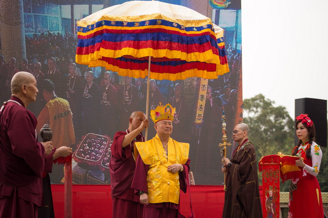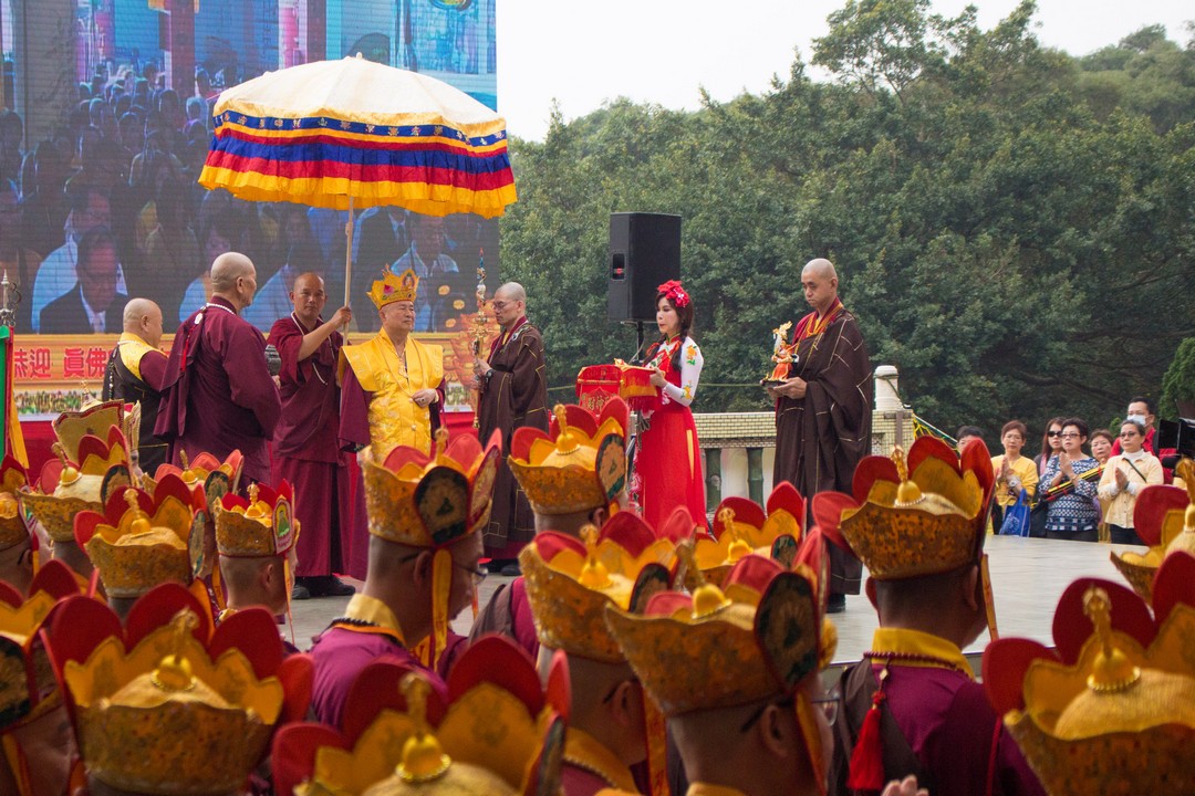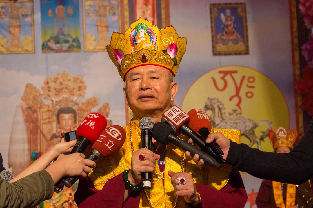 法王勉勵弟子不僅要修出世的佛法,也要兼顧世俗事務,如同國民黨黨主席吳敦義說的話:「顧佛祖,也要顧肚子。」(台語),法王慈悲於法座上賜福於眾人,祝福台灣經濟起飛,大家共富,與會的大眾皆歡喜讚嘆。