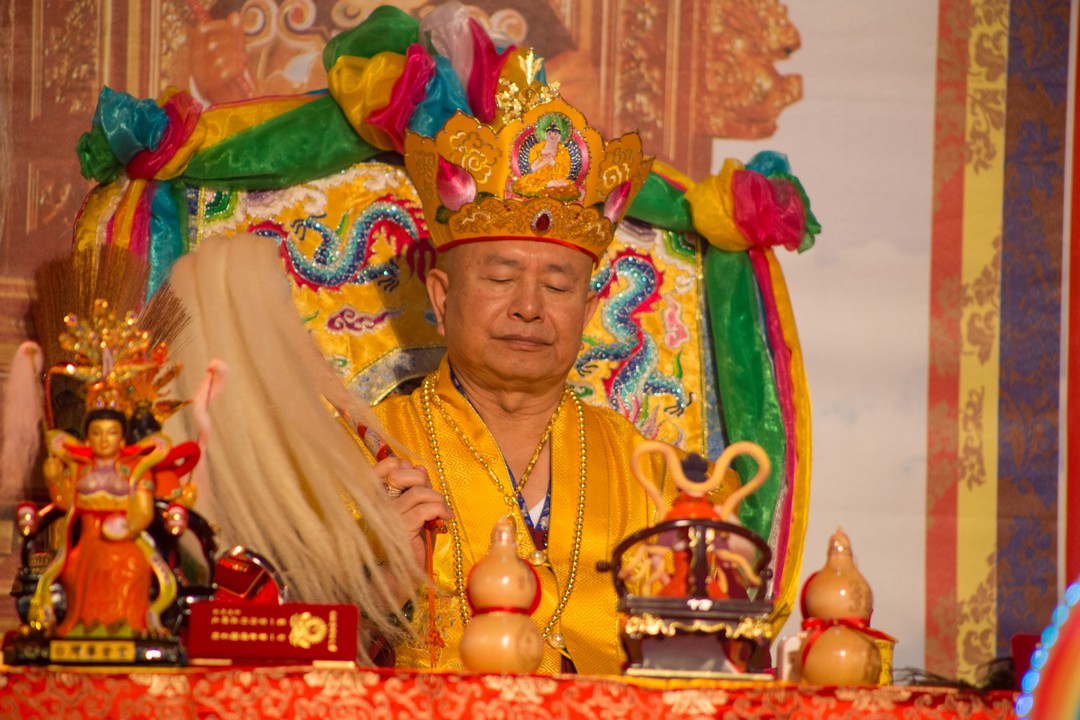 《真佛宗》蓮生活佛盧勝彥法王 於2018年3月4日假〈黃帝雷藏寺〉主持 「金母、地母、天上聖母息災祈福增益超度新春接財神水供大法會」,首傳及賜授「金面金母不共大法」灌頂。