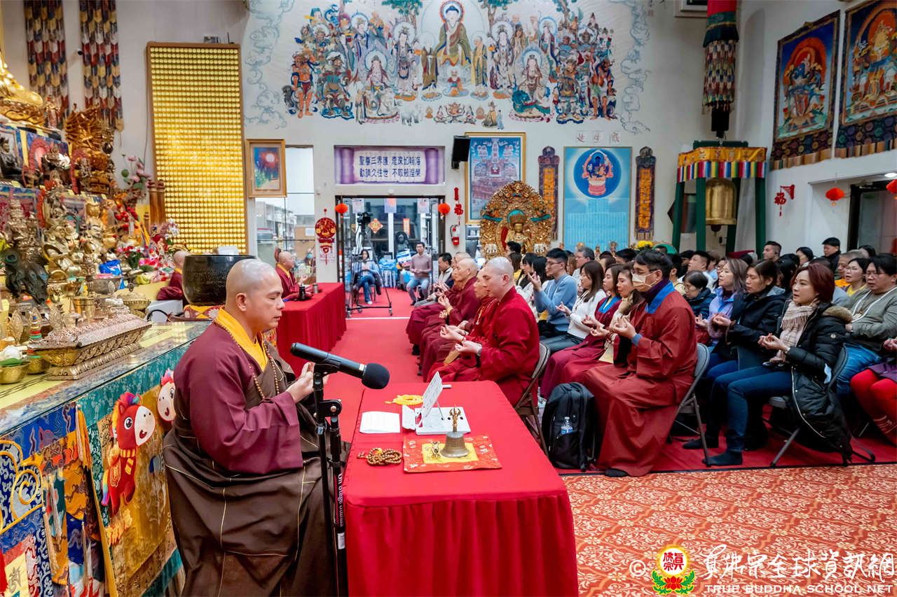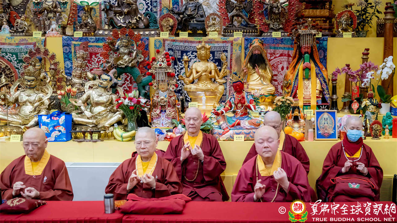 雖然天寒地凍,大眾仍虔敬的熱忱參與,跟隨著蓮吟上師做禮拜、獻供、誦經、持咒、入定、回向,人人全神貫注的修法,祈求瑤池金母大天尊、阿彌陀佛、諸佛菩薩護法金剛佛光注照,聖尊與師母都健健康康的早日和弟子們團聚在西雅圖雷藏寺。