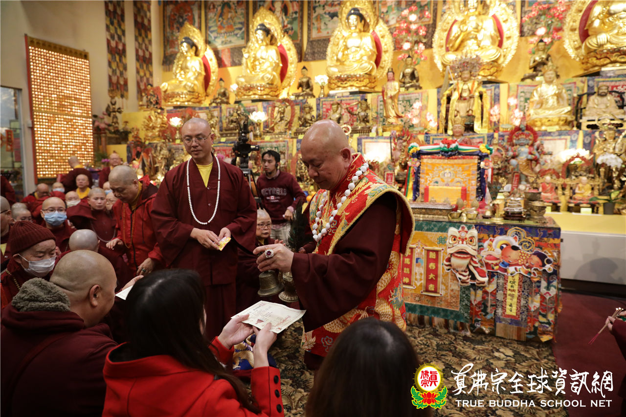 師尊在精彩的開示後,又繼續為大家加持賜福。師尊的著作第275册【解脱道口訣】出版了,師尊親切的為同門簽書留念。衆人歡度過一個充實的大年夜。