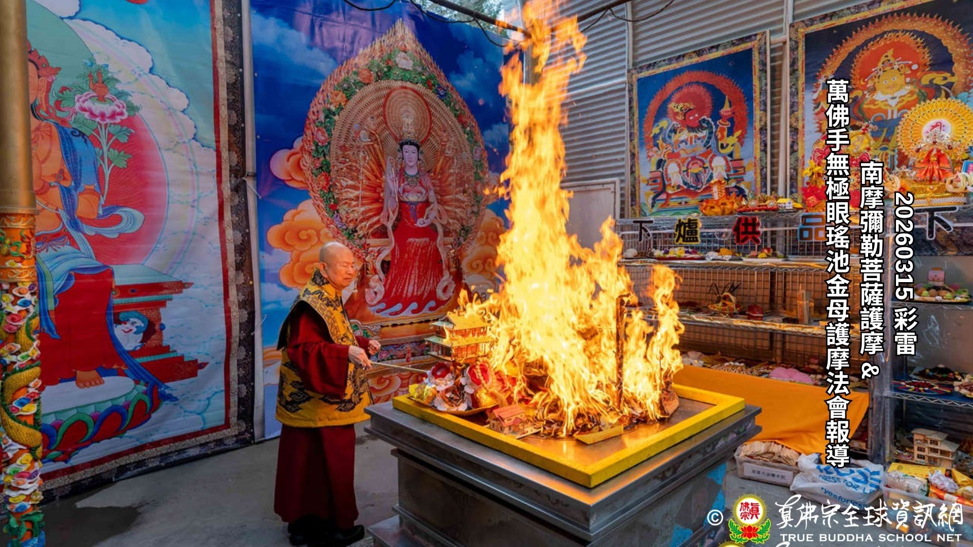 2026年3月15日,彩虹雷藏寺恭請法王聖尊蓮生活佛,主持雙主尊南摩彌勒菩薩,萬佛手無極眼瑤池金母護摩法會。這是法王短暫休養後,重新登上法台主持法會!衆人心中無比喜悅。