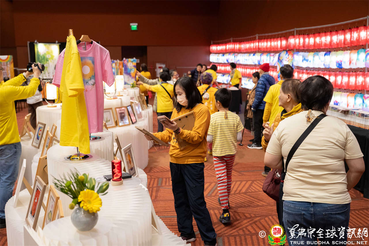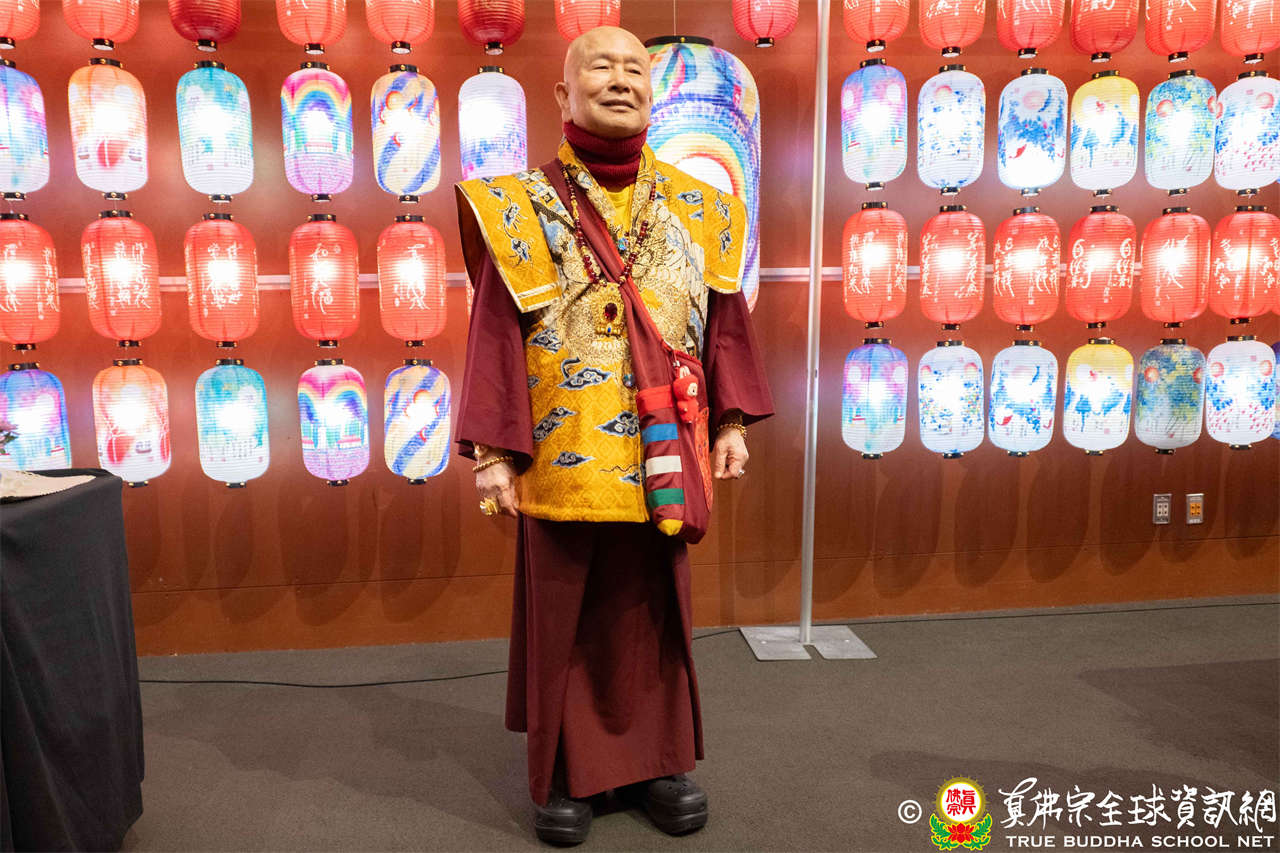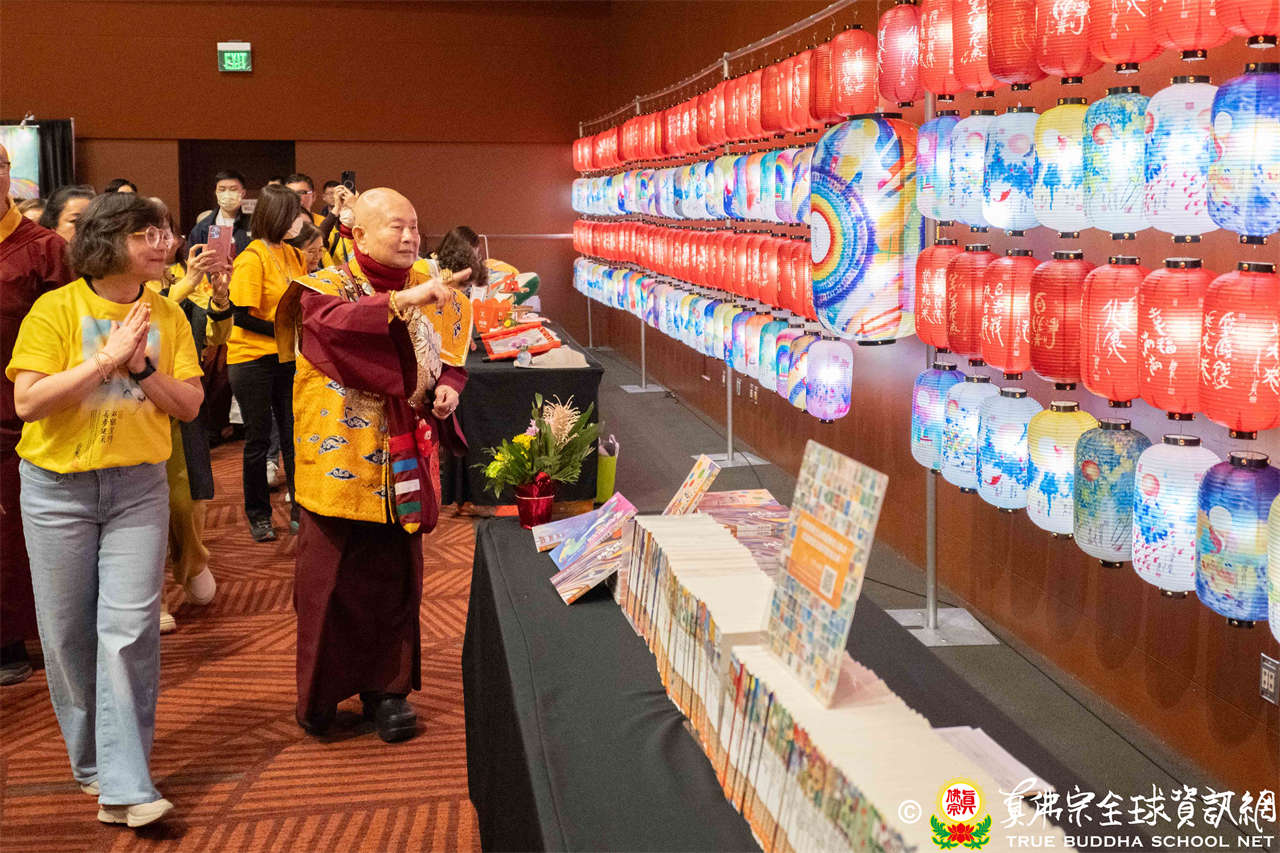 聖尊進入會場,加持壇城、往生位以及延生位,隨後欣賞並加持由真佛般若藏設置之「蓮生活佛盧勝彥書畫展」。本次展覽以「雙鶴呈祥,長壽健康」為主題,將聖尊畫作及墨寶設計成精美燈籠,現場點亮近300盞祈願燈,每一盞燈皆象徵著弟子們請佛住世的虔誠心願,周邊亦陳設聖尊歷年所著之文集和多項精緻文創商品,令人目不暇給。