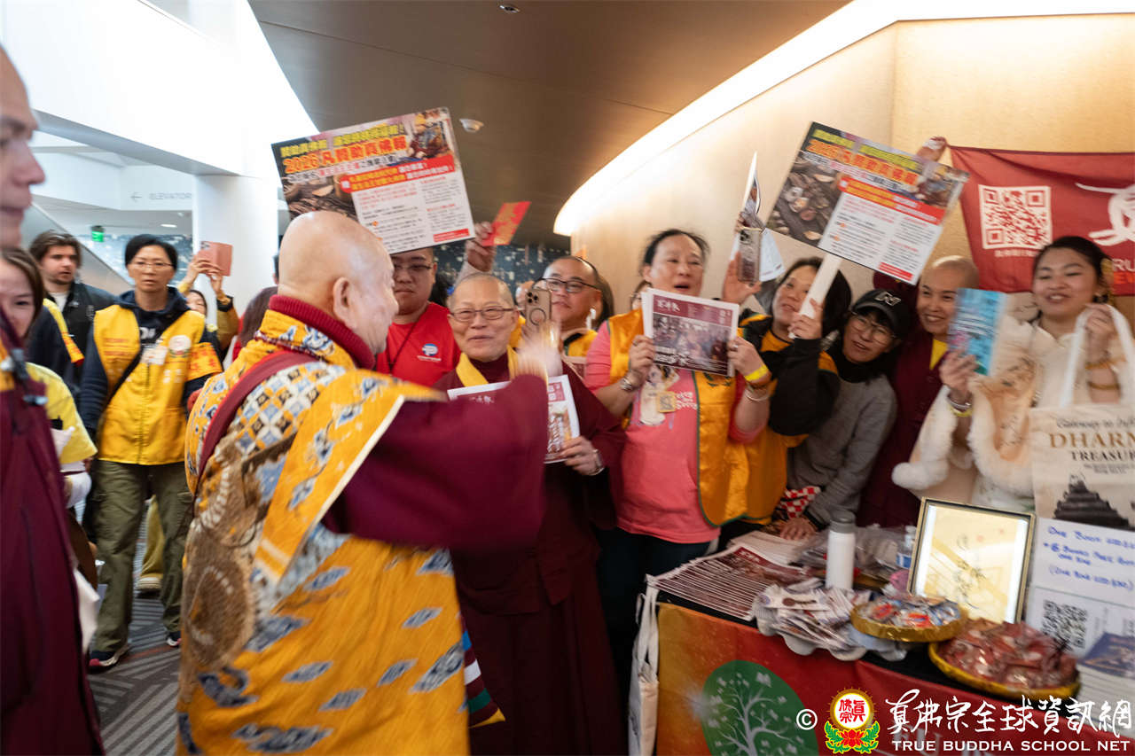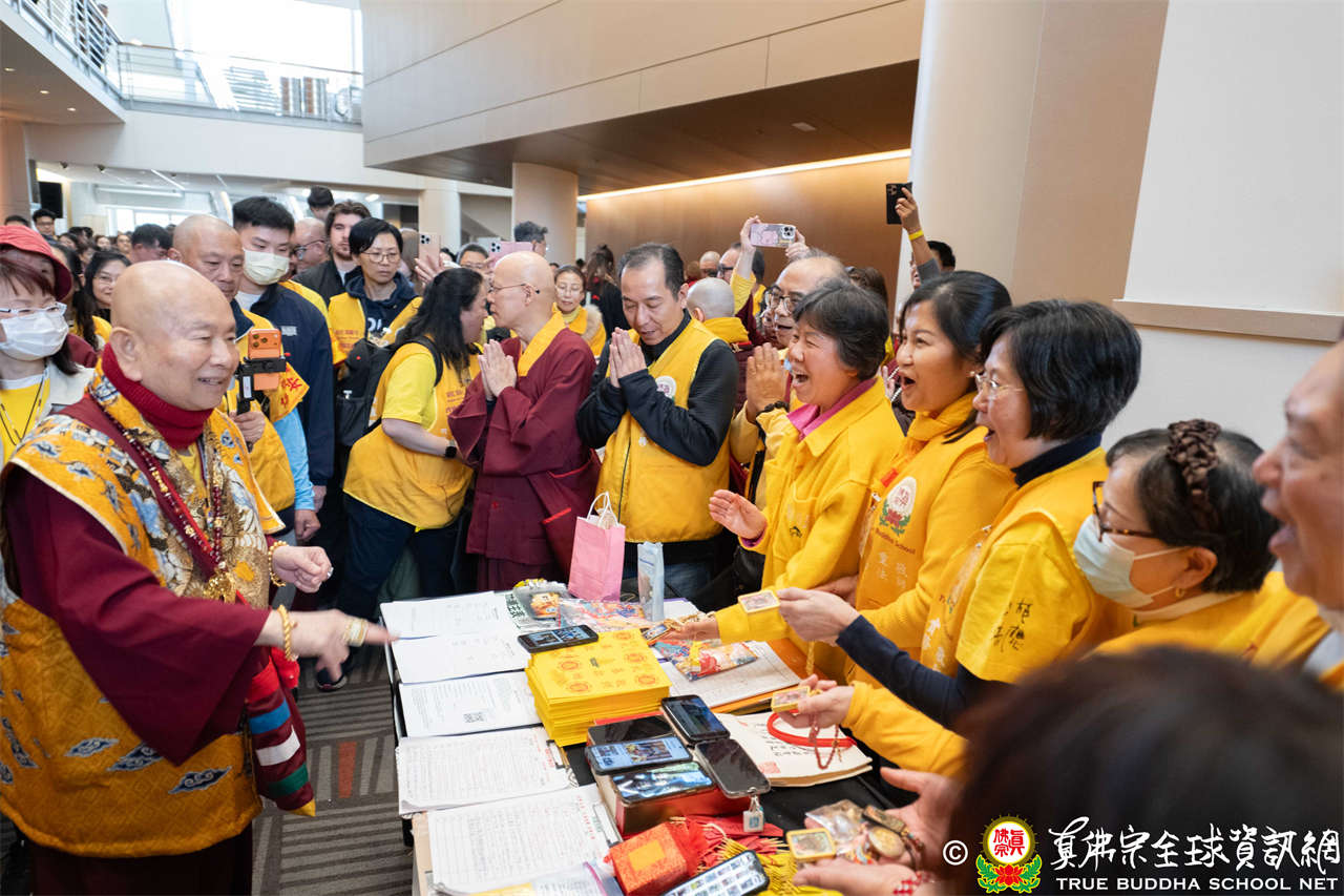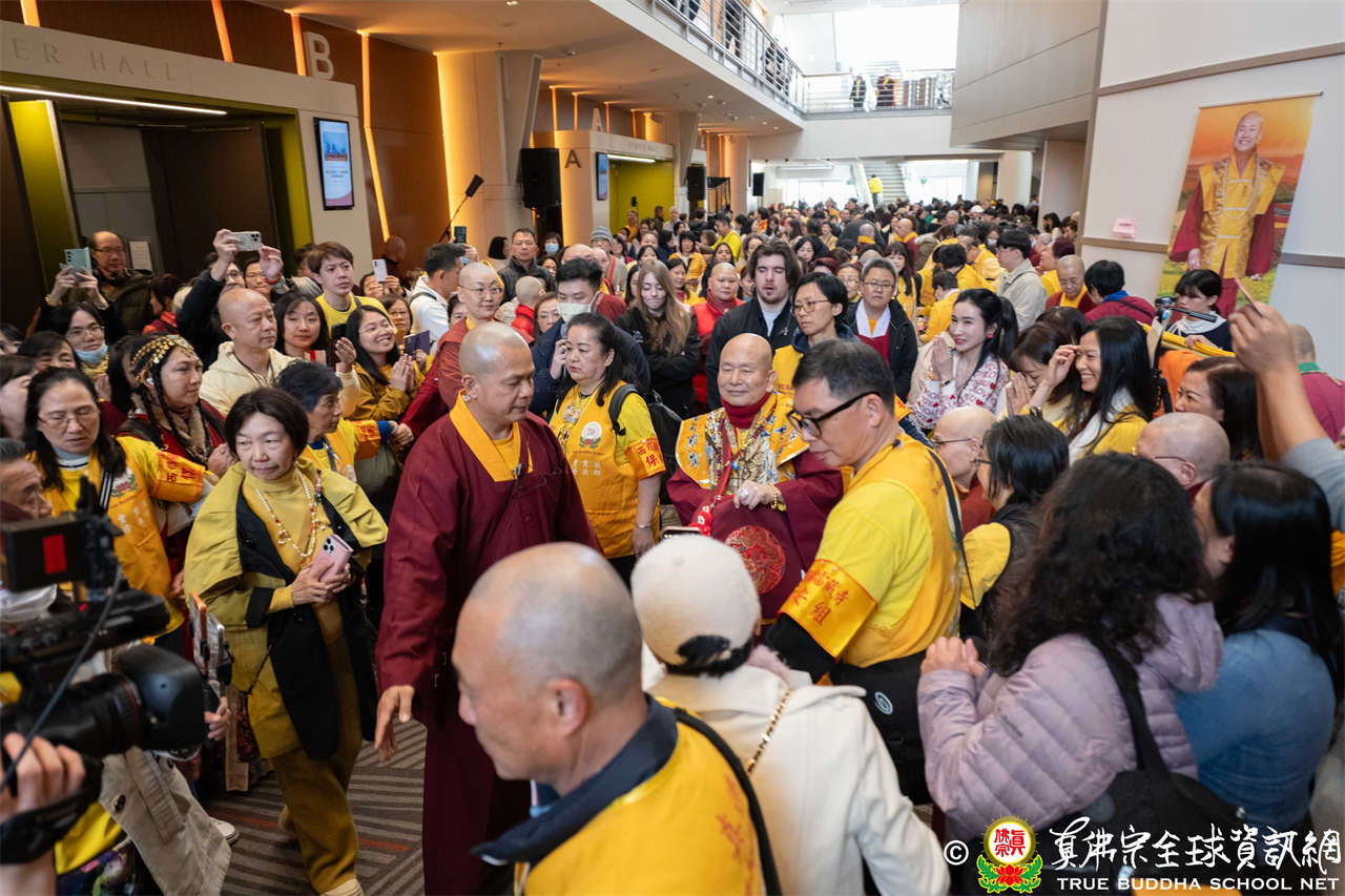 當日,蓮生活佛與師母蓮香上師座車抵達會場時,大眾早已懷著喜悅與期待之心恭候,當聖尊與師母步下座車,現場隨即響起熱烈掌聲,聲聲的問候洋溢著弟子們對聖尊的思念與敬仰,聖尊亦以親切笑容揮手回應,氣氛熱烈而溫馨