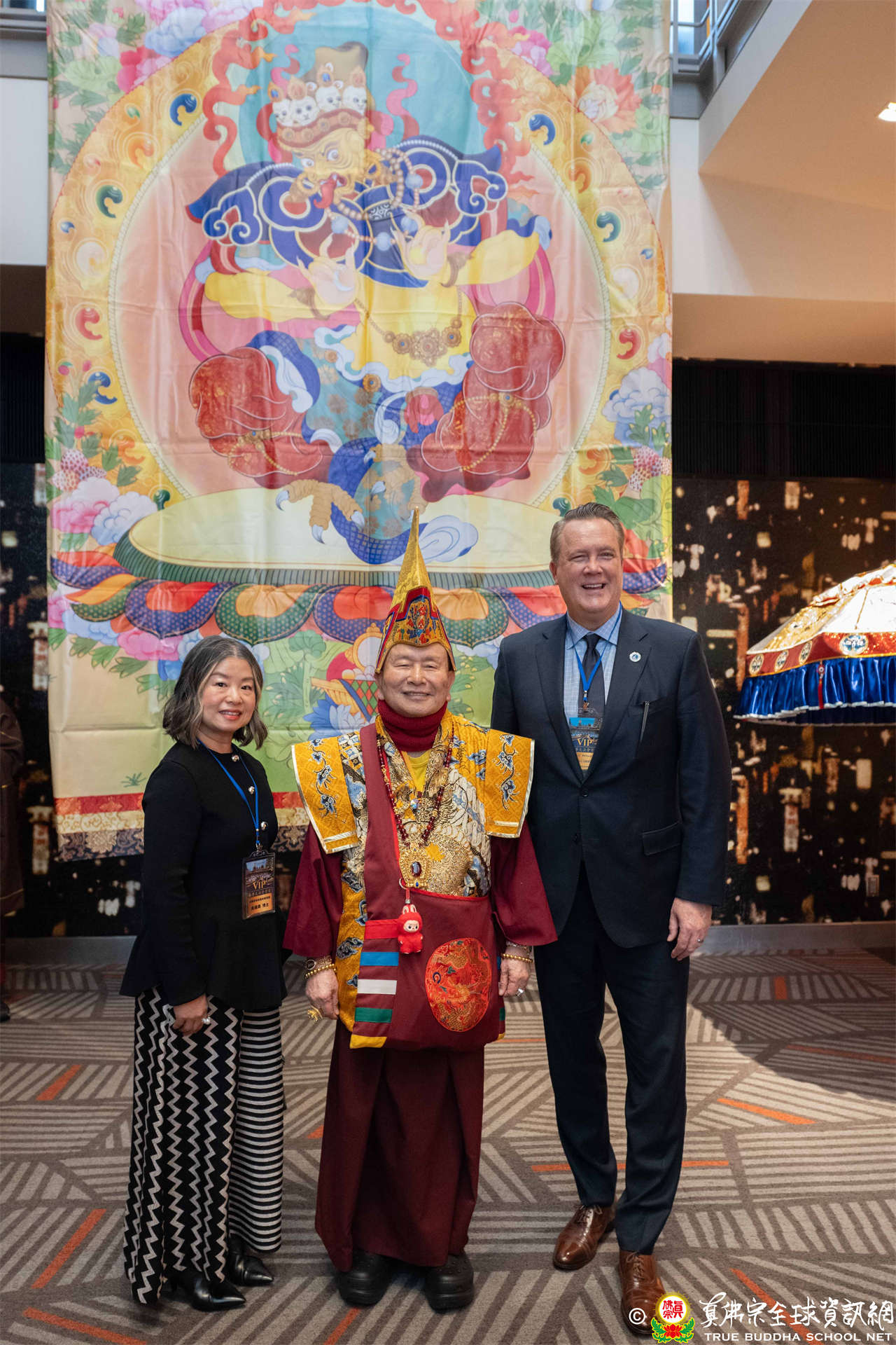 各界僑領共襄盛會,十方善信大德踴躍參與。台灣賴清德總統致贈字幅「澤潤安民」,蕭美琴副總統題贈字幅「溥愛匡持」,行政院長卓榮泰及多位立法委員、縣市首長、議員代表等亦紛紛致贈字幅,祝願法會圓滿成功。