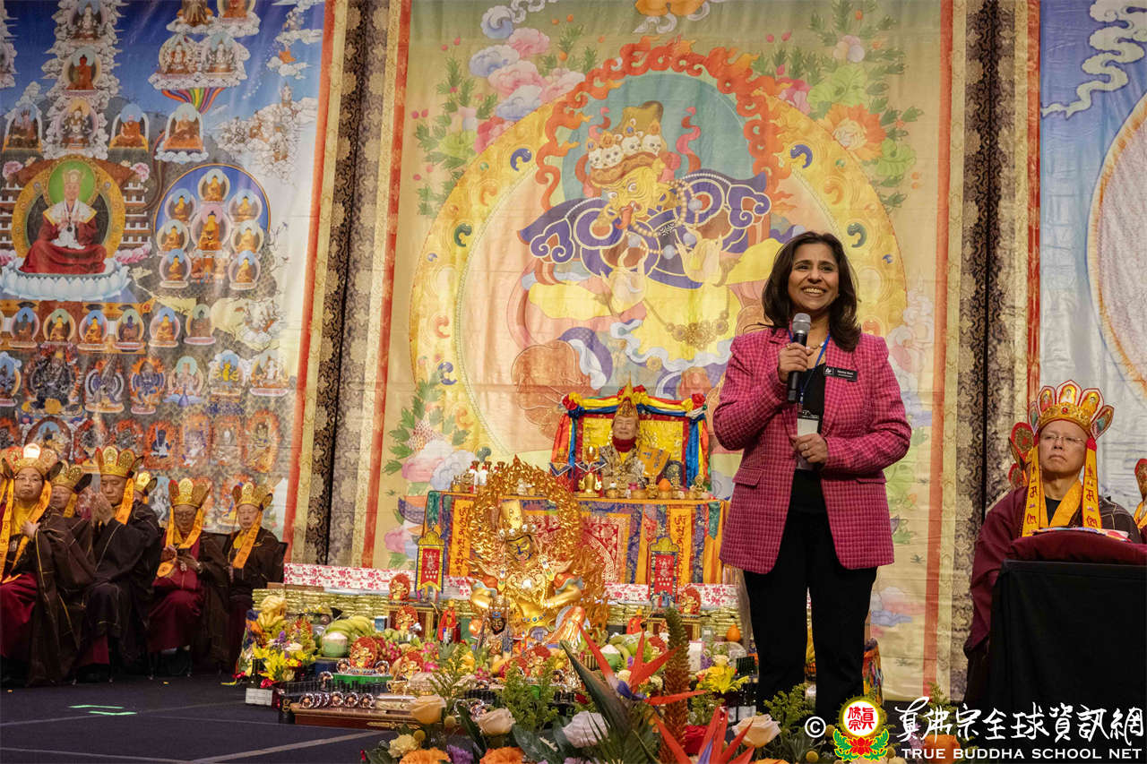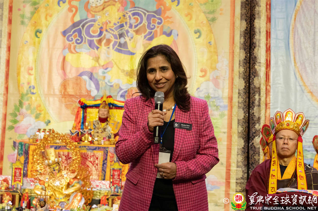 接著,由Redmond市議員Menka Soni致詞。MenkaSoni女士為市議會首位具有移民背景的議員,象徵著國家、州以及城市對移民族群的包容與歡迎,她表示,能參與此次盛會,深感榮幸,並誠摯歡迎與會大眾的蒞臨。