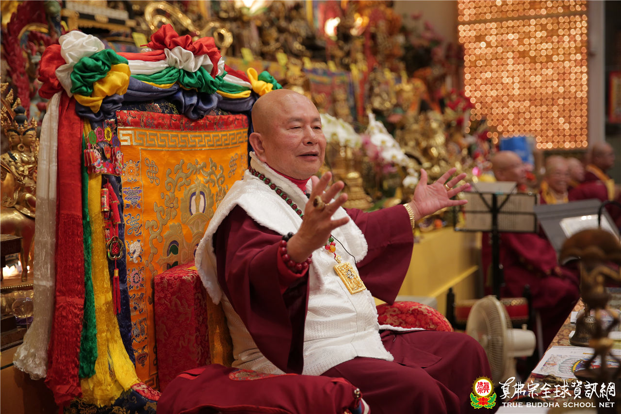 同修完後,由彩雷的釋蓮琴上師代表大家向根本上師聖尊蓮生活佛盧勝彥請法。