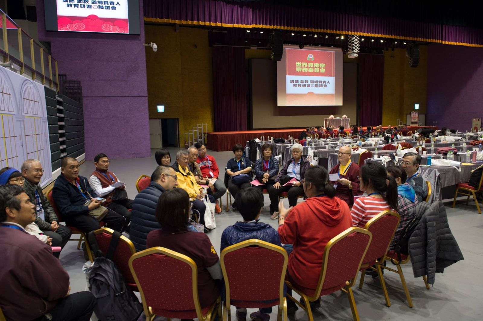 在處長們為大眾講解課程後,大會亦為大家安排分組聯誼,讓講師、助教及道場負責人直接與處長們交流。只見大家熱烈參與討論,都顯得極為積極,只可惜因為時間限制,無法多加以交流。最後,會長蓮花程祖金剛上師致結業詞,感謝大家護持此活動,並以一番勉勵的話帶動大家一起來為真佛宗服務,一時士氣大增。新一屆宗委會首次舉辦的「講師、助教及道場負責人教育研習暨聯誼會」成功舉行,較後,大家一起參與由宗委會及馬密總聯辦的與佛供參感恩晚宴。