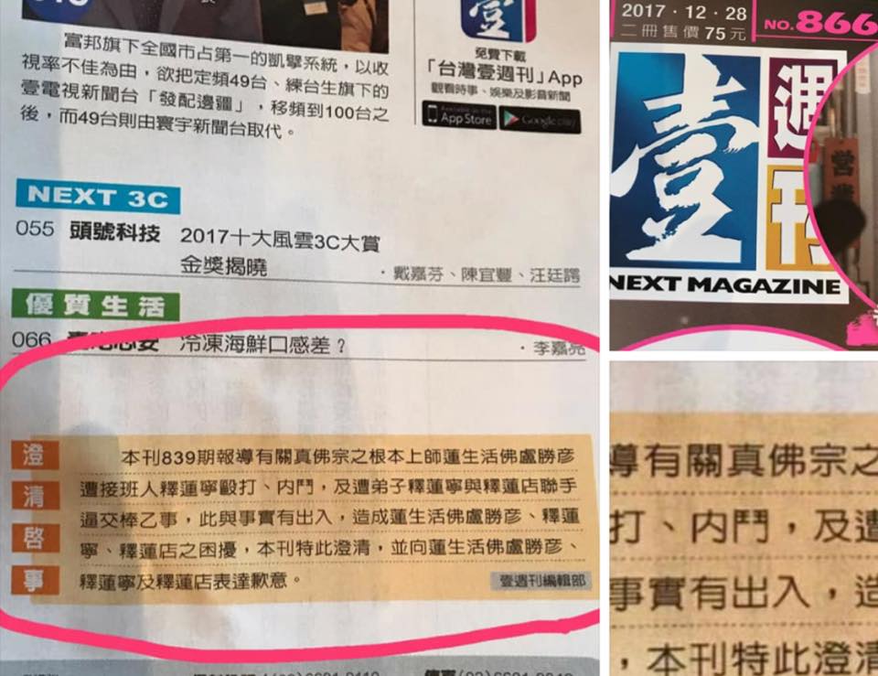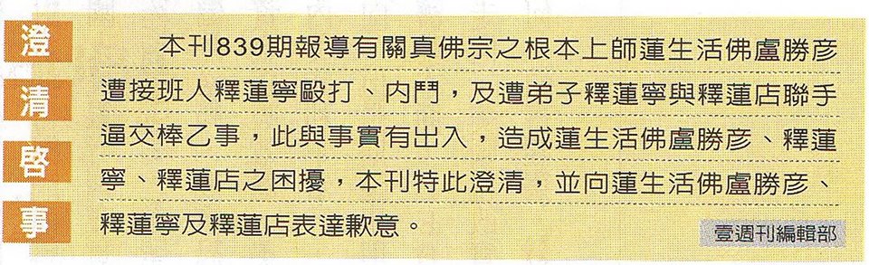 但也是"壹週刊"對師尊[蓮生活佛]的第一次公開道歉!