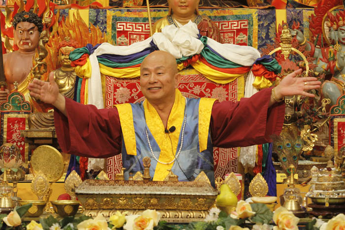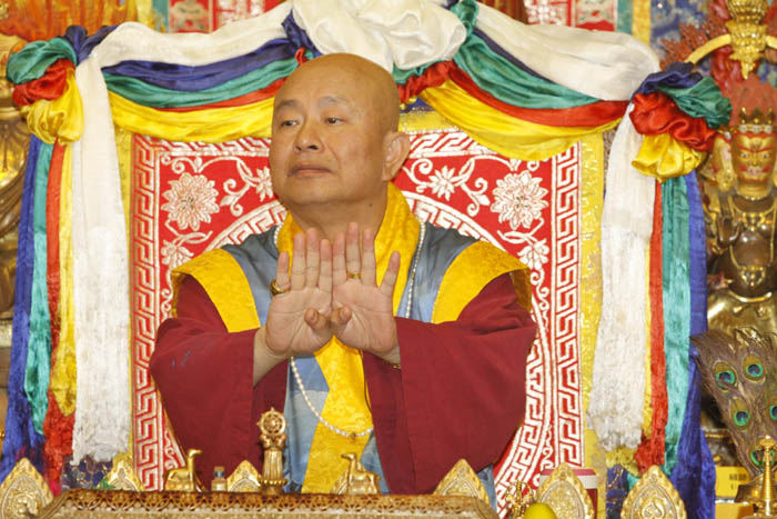 緊接著,就是萬眾所盼蓮生法王的珍貴開示。師尊在一開始侃談道;離開西雅圖有一年之久,當初瑤池金母曾予以師尊指示,六十六歲祂就可以回去,由此因緣,師尊離開西雅圖到台灣弘法,在台灣及東南亞的每場傳法大法會,皆是未傳先轟動,場場法會皆是萬人湧動,非常之殊勝。師尊談到此次在剛回到西雅圖時,因西雅圖及美加弟子懇求師尊常回西雅圖雷藏寺,師尊開佛口說;如果雷藏寺的烏鴉都一起叫,祂就答應弟子們的請求。果不其然,翌日的早上約十一點多時,正巧師尊、師母及數位同們都在寺外,突然間一大群大大小小的烏鴉劃空而過,鴉鴉聲響徹四方。如此超凡的相應,正是「佛無虛言」的鐵証。師尊再提到密教之三根本¬︰「本尊」–未來成就的根本、「根本護法」¬–護持事業的根本、「傳法的根本上師」–加持的根本。其中以根本上師為首重,若無根本上師修行的口訣,便不容易與本尊及護法相應。修行在密教裡講的是「相應」,相應是靠著祈禱法,慢慢的與本尊接近,直至變成本尊,便可繼生成佛。