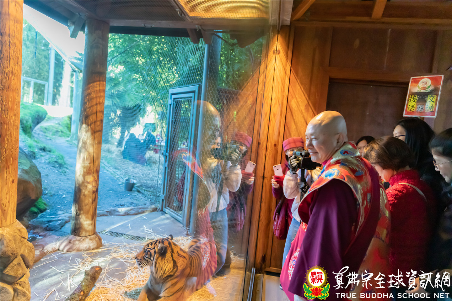 師尊一走進動物園就笑說,我們是組團來給動物們看。奇妙的是,本來懶洋洋躲起來的動物,一見到師尊走近,都主動跑過來”打招呼”;老虎一直跑到師尊身邊(隔著玻璃),海象也游到師尊前面來回三次,數度翻身如同禮拜。是否這些動物有靈性知道大成就者蒞臨,還是師尊穿著亮紅色龍袍的原因,眾人不得而知。此時師尊笑著對大家說,若依某人所說,搞不好這些動物,是我們前世的親人,等了我們500年,要向我們討回所欠的錢,眾人聽了差點暈倒。
