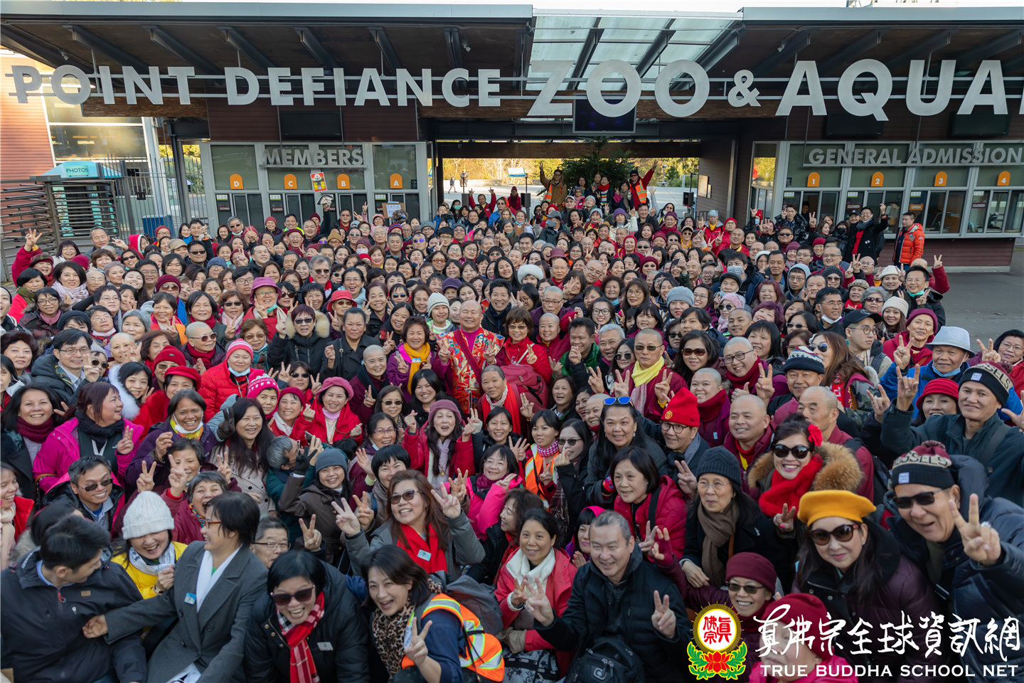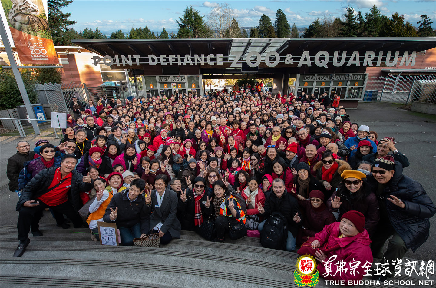 早上9點半,十幾輛遊覽車皆來到Renton某大型購物停車場會合,準備載師尊師母與大家前往西雅圖Tacoma Point Defiance Zoo Aquarium動物園與水族館。為了公平起見,首度採用抽籤方式,決定師尊師母去程與回程所搭的遊覽車。當師尊抽到12號籤時,12號車的同門歡聲震耳,有如中了樂透彩!接著,師尊師母在數位工作人員(侍者、攝影和照相)以及12號車的同門的陪同下,浩浩蕩蕩的出發,並於十點時抵達動物園與水族館入口。其他先抵達的同門,見到師尊師母立即圍湧過來,如久別重逢。