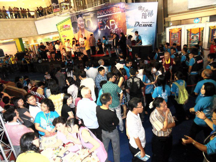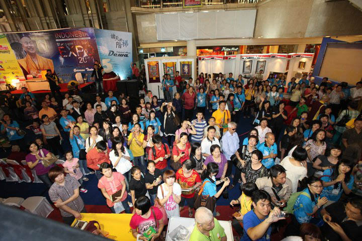蓮生活佛ㄧ抵達書展簽書會場,立刻受到人潮的熱烈掌聲,而最新譯的印尼文集「諸天的階梯」,在短短數天,已銷售千餘本,數更在增加之中。