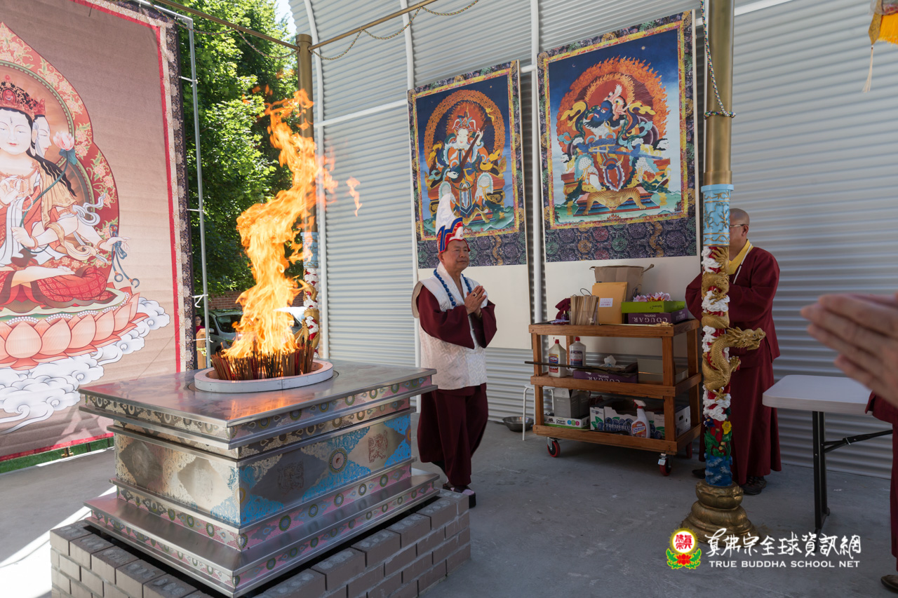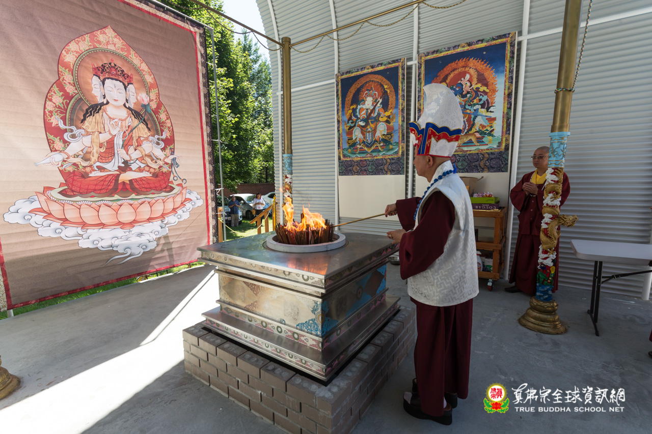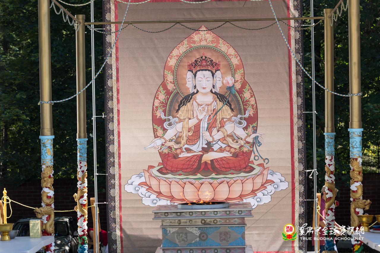 2019年7月21日下午,美國西雅圖彩虹雷藏寺恭請根本上師蓮生活佛盧勝彥主壇不空羂索觀音護摩大法會。「不空羂索觀音」是觀音院裡的七觀音之一,是觀世音菩薩的一個化身,在胎藏界曼陀羅中,是非常偉大的一尊觀音。祂擁有跟「準提佛母」差不多相等法力,本地是「不空成就佛」。「不空」,顧名思義,就是所求的都不會落空,用「羂索」綁住所願,讓願望全部都能達成。祂的金剛號稱做「等引金剛」-「平等接引」之意。「平等接引」就是不管你是誰,不分善惡好壞,一律接引,沒有分別的。祂最偉大的誓願就是在祂的「羂索」,在祂的「不空」。祂能夠息災,增益,敬愛,降伏,一切都非常圓滿。「不空羂索觀音」對正在打官司的人,也有幫助,因為祂是不空的,向祂祈求都會有很大的感應。據《白寶口抄》記載,在南印度,有一古國名摩訶賴吒,因國土荒蕪、衰敗、災禍連年、民生凋蔽,而改供奉不空羂索觀音,從此五穀豐登、國富民強。凡眾生修持此尊法門,可得身無眾病安穩快樂,眾病除癒,一切有情見歡喜,愛樂尊重無厭足,常不畏一切怨仇等利益。