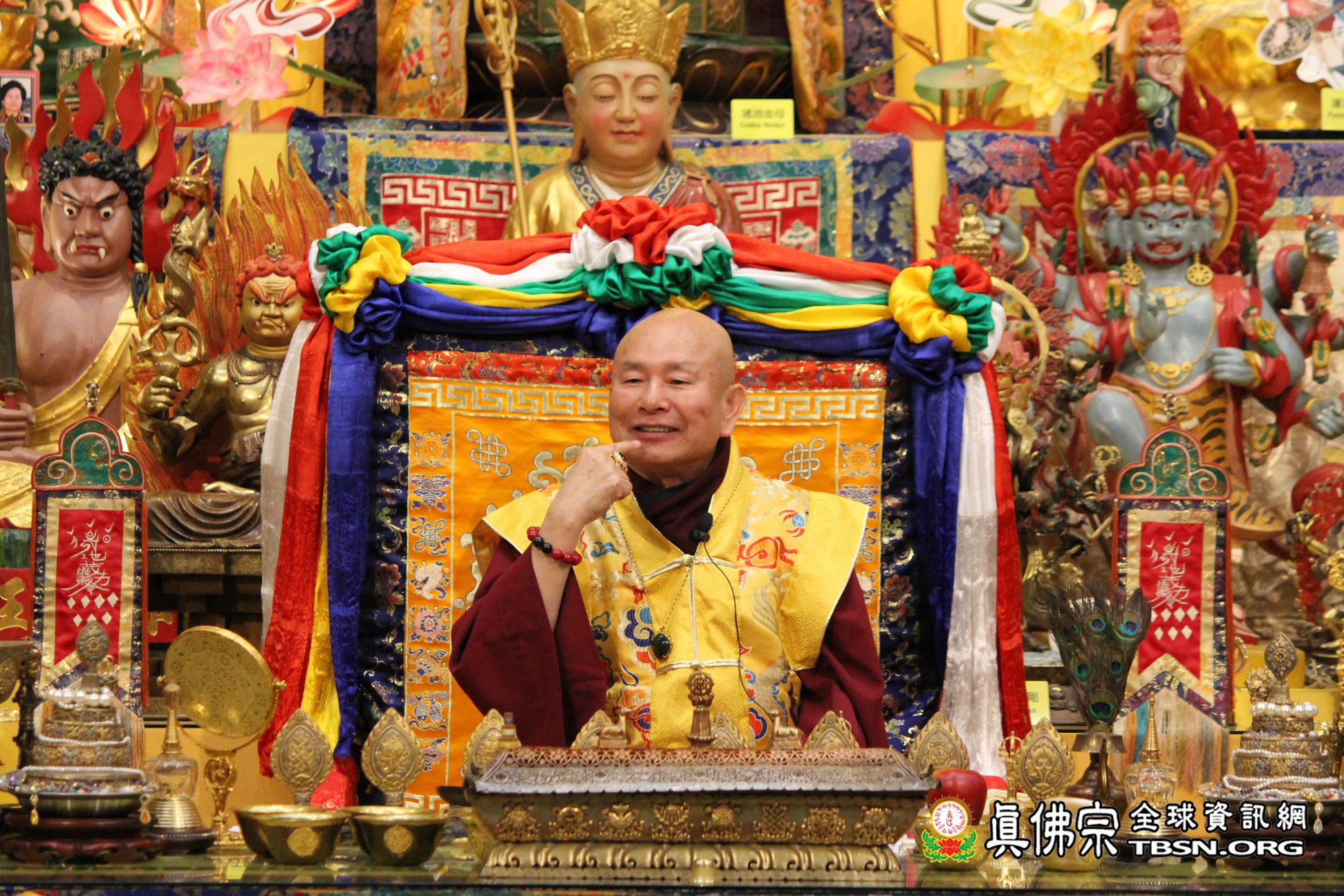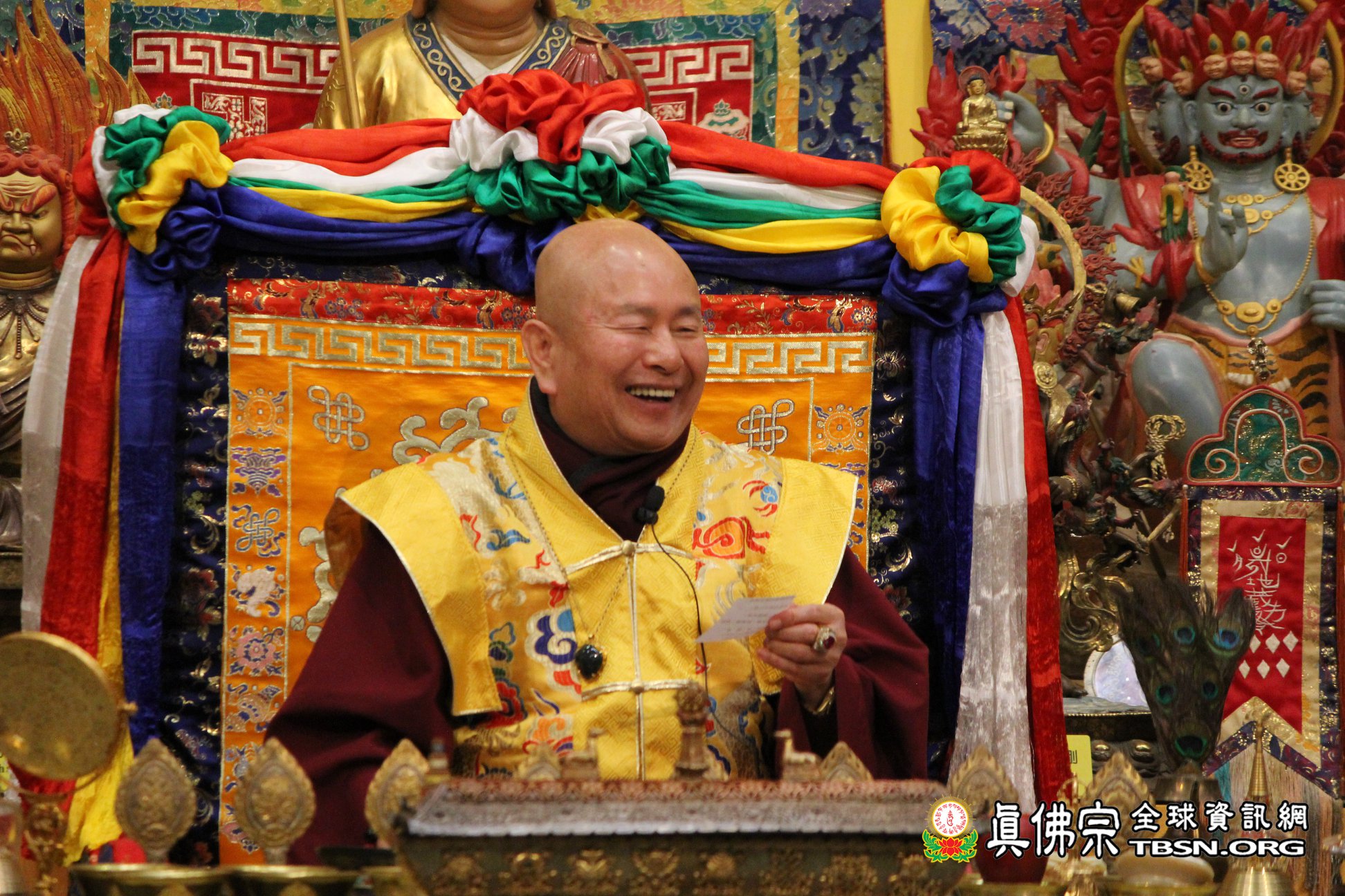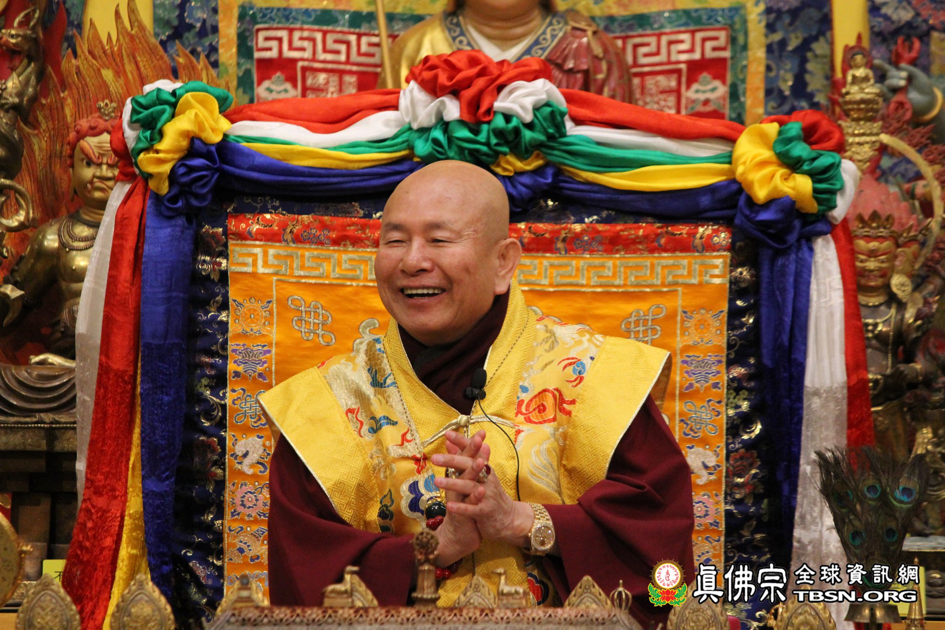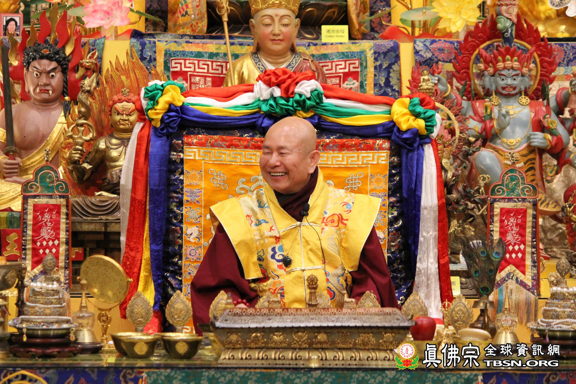 18日晚上,聖尊與師母聯袂來到祖廟參加此次大準提佛母本尊法的周六同修會。修持完莊嚴圓滿的儀軌後,聖尊談到有許多人問本尊是大準提佛母,那護法是什麼?聖尊答;還是大準提佛母。準提佛母可以當本尊也可以當護法,因為祂的法力非常的大。