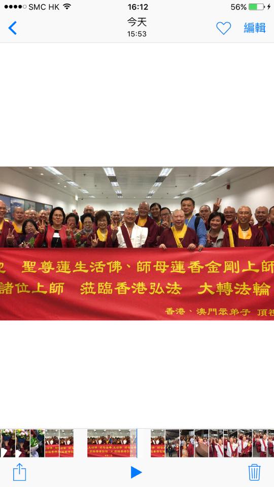 12日下午三點多,蓮生活佛盧師尊丶蓮香師母抵達香港國際機場。