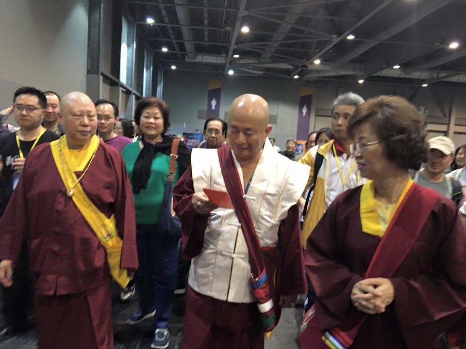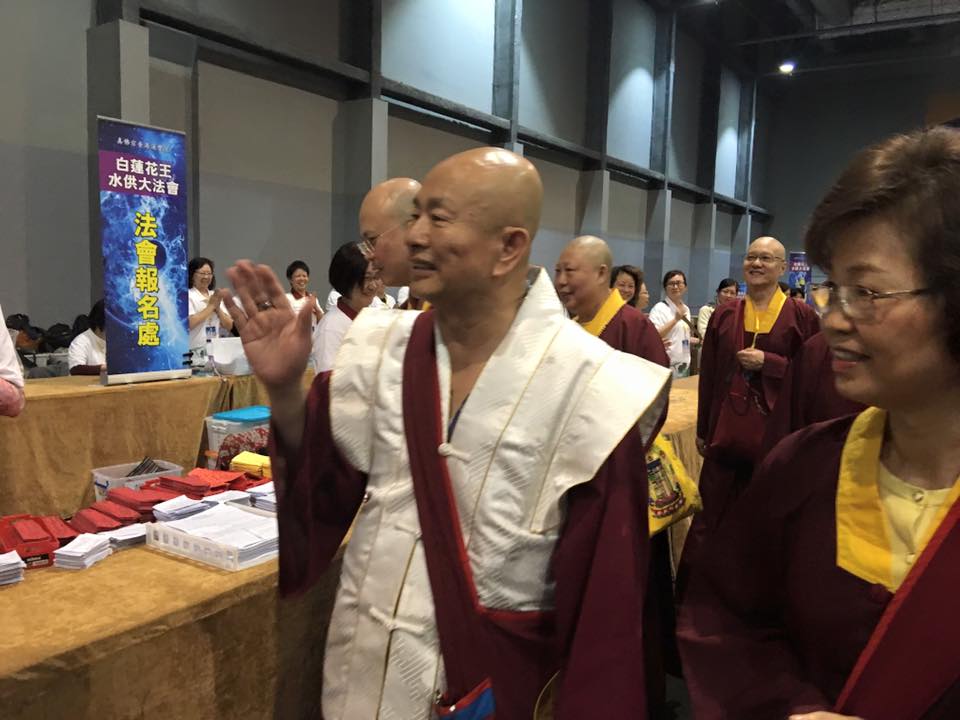 12日晚上九點多,蓮生活佛盧師尊丶蓮香師母抵達「白蓮花王法會」會場加持,並作麥克風試音,以及加持延生位,往生位;並關懷所有日夜不休的工作人員及義工們!