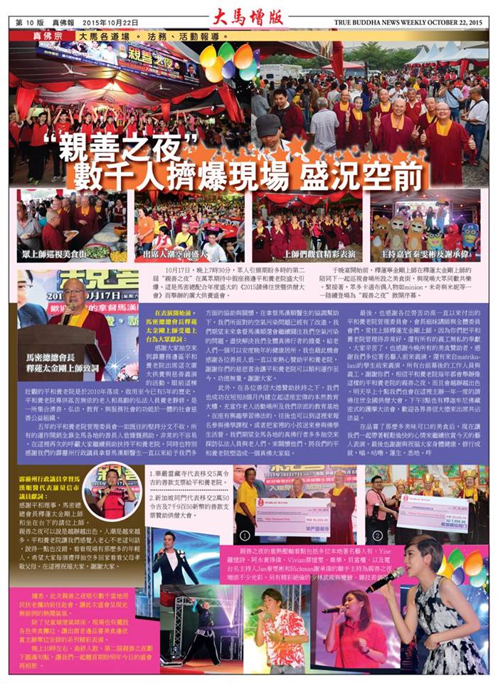 2015年10月18日在真佛宗大馬密總的籌辦之下,第四屆「馬來西亞全國供僧大會」暨「請佛住世.釋迦牟尼佛護摩大法會」在馬來西亞霹靂州務邊區的真佛宗「平和老人院」盛大舉行。