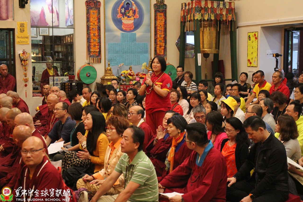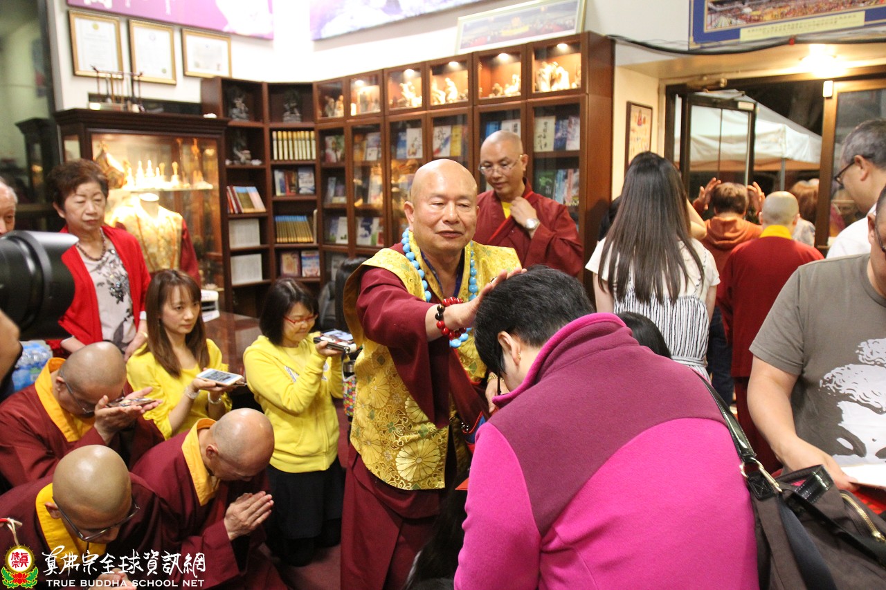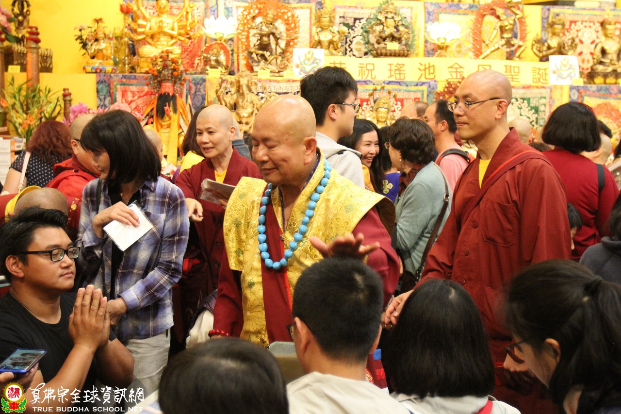 師尊預祝瑤池金母聖誕千秋,香煙不斷。師尊特別提到香燈師和知客僧,香燈師是每座寺廟都有,是專門負責每天固定點香、拜佛、點油燈、換淨水、換供品的師父;知容僧是專門負責為外來的陌生人特別介绍本寺所有供奉的諸尊、諸菩薩,及詳細介紹寺內的各項活動,如每周六晚上八點的同修,有師佛説法開示,及周日下午三點在彩虹雷藏寺有護摩法會及師佛開示,有翻譯人員翻譯,沒有語言上的困擾。知客僧是接引衆生的法船,度到彼岸去,要懂得修法的過程,要有禮貌的、和藹的讓外來的陌生人產生對佛法的興趣,歡迎他們來參加同修,聽師佛的開示。