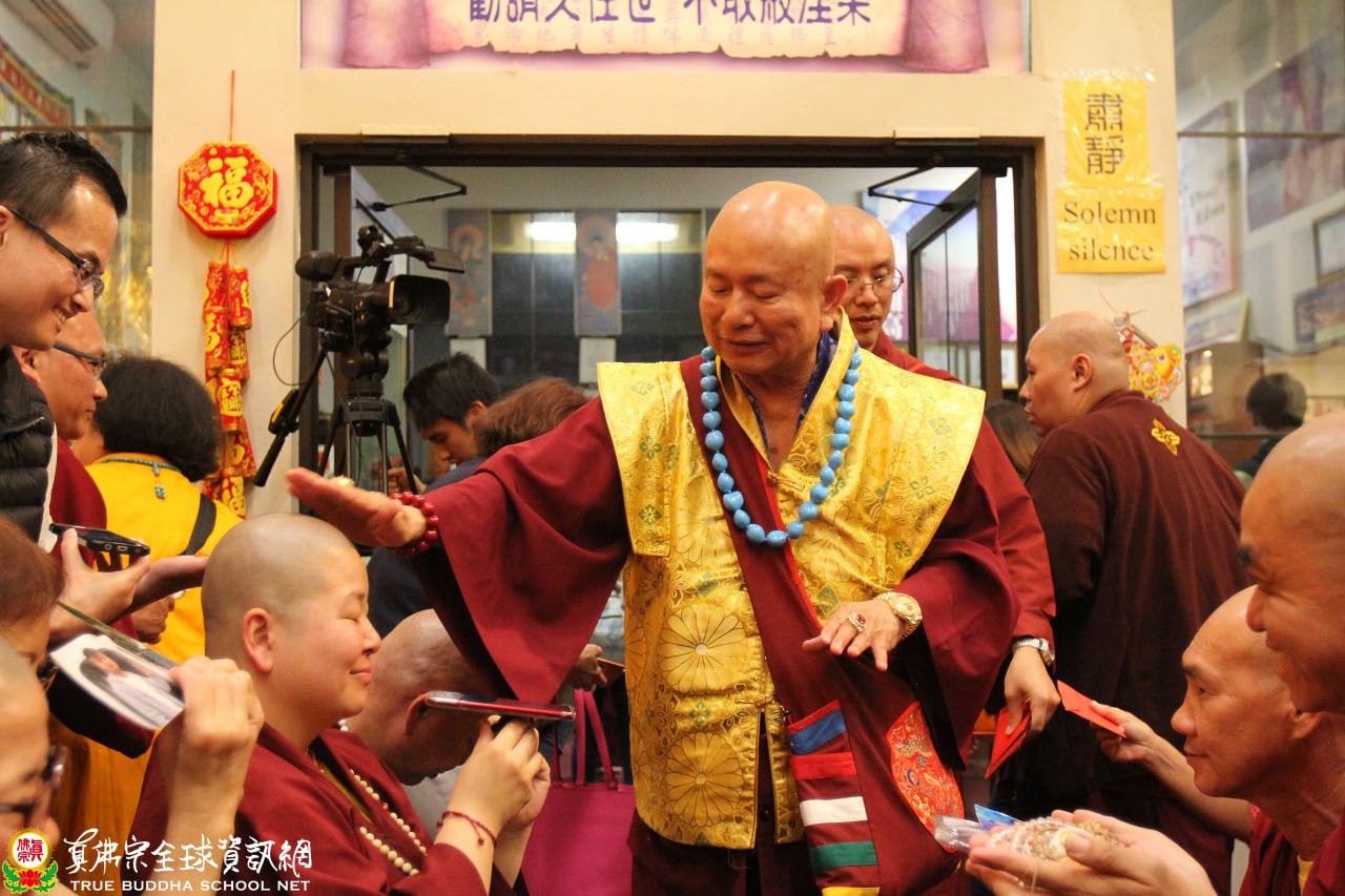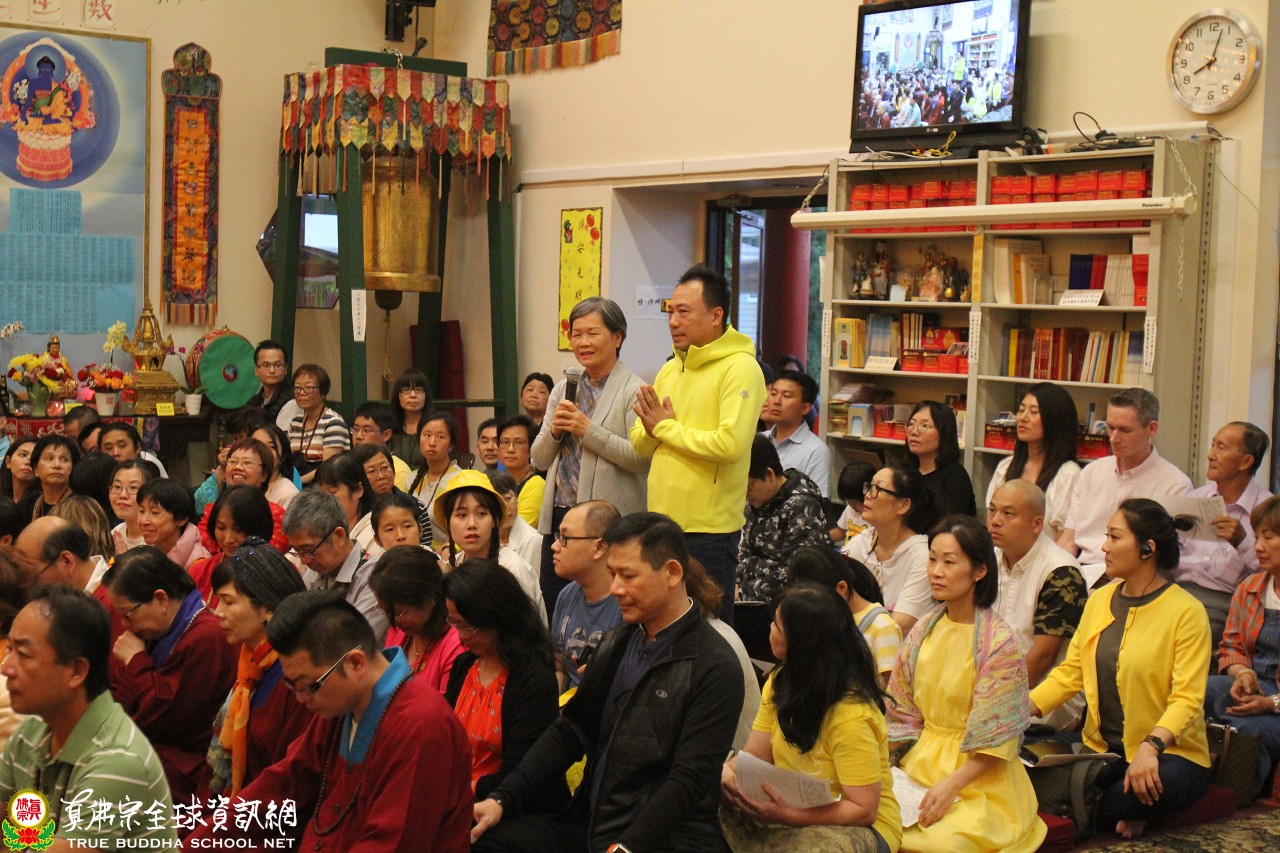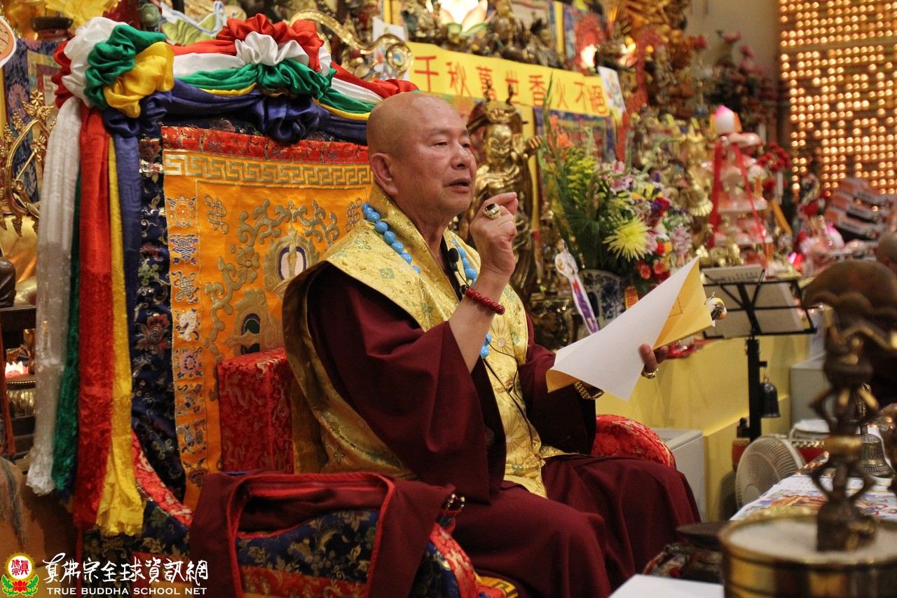 師尊說,當在大家唸誦經文時,見到很多般若光下降。玄玄上人不是指ㄧ個人,是原始的無上意識。玄玄上人傳道給木公東華帝君,東華帝君傳道給瑤池金母,瑤池金母在娑婆世界找到師尊,才有現在的TRUE BUDDHA SCHOOL。慈航大士也是觀世音菩薩,大成至聖興儒治世天尊就是孔子。儒教、道教、佛教ㄧ起來讚揚、讚嘆瑤池金母大天尊。瑤池金母說,要解脱,ㄧ個是禪定、ㄧ個是智慧,智慧不是ㄧ般的知識,而是佛的智慧,如來的佛慧,用佛的智慧來做禪定,才能到達彼岸.就是解脱。師尊説,人生没什麼事,重點在能不能解脱。我們大家坐在這裏,進入真佛宗,為了就是要解脱,人的生死不重要,解脱才最重要。師尊説自己最重要的大事就是能不能夠到佛國淨土,成為佛,解脱到不退轉的境界。我們要學習禪定和智慧,入三昩地從有相的三昧地到無相的三昧地,才能得到真正的解脱。只要解脱,佛國是一念之間就到了.