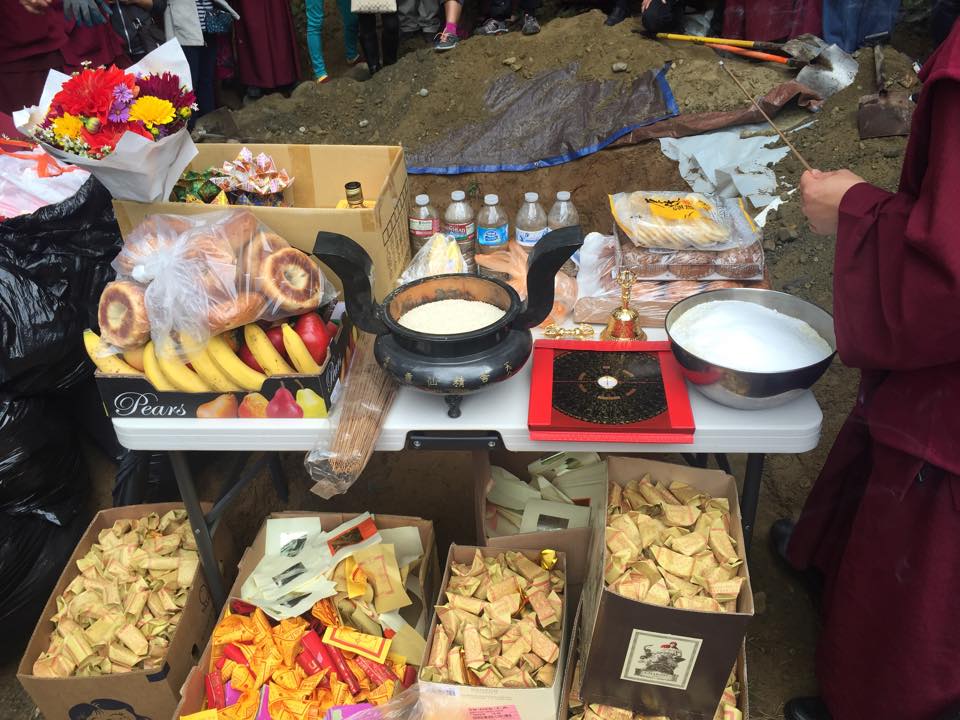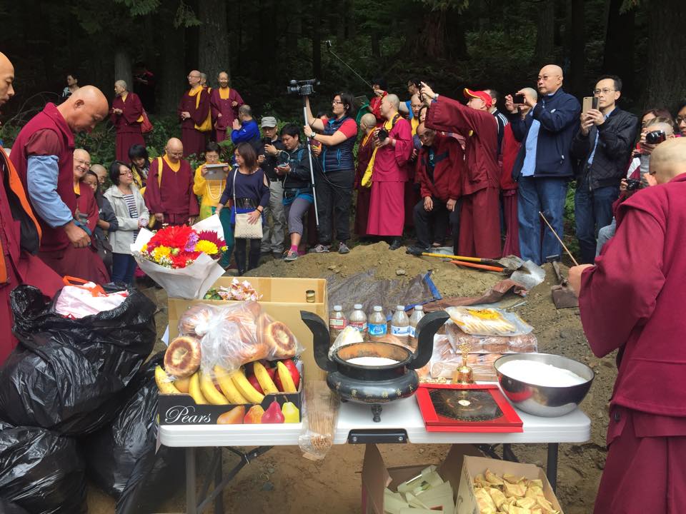 午餐過後,蓮生活佛即主持「生基儀式」,從上香、清淨、召請、米灑四方、燒金、入生基物…等,儀式一一進行,莊嚴而隆重。
