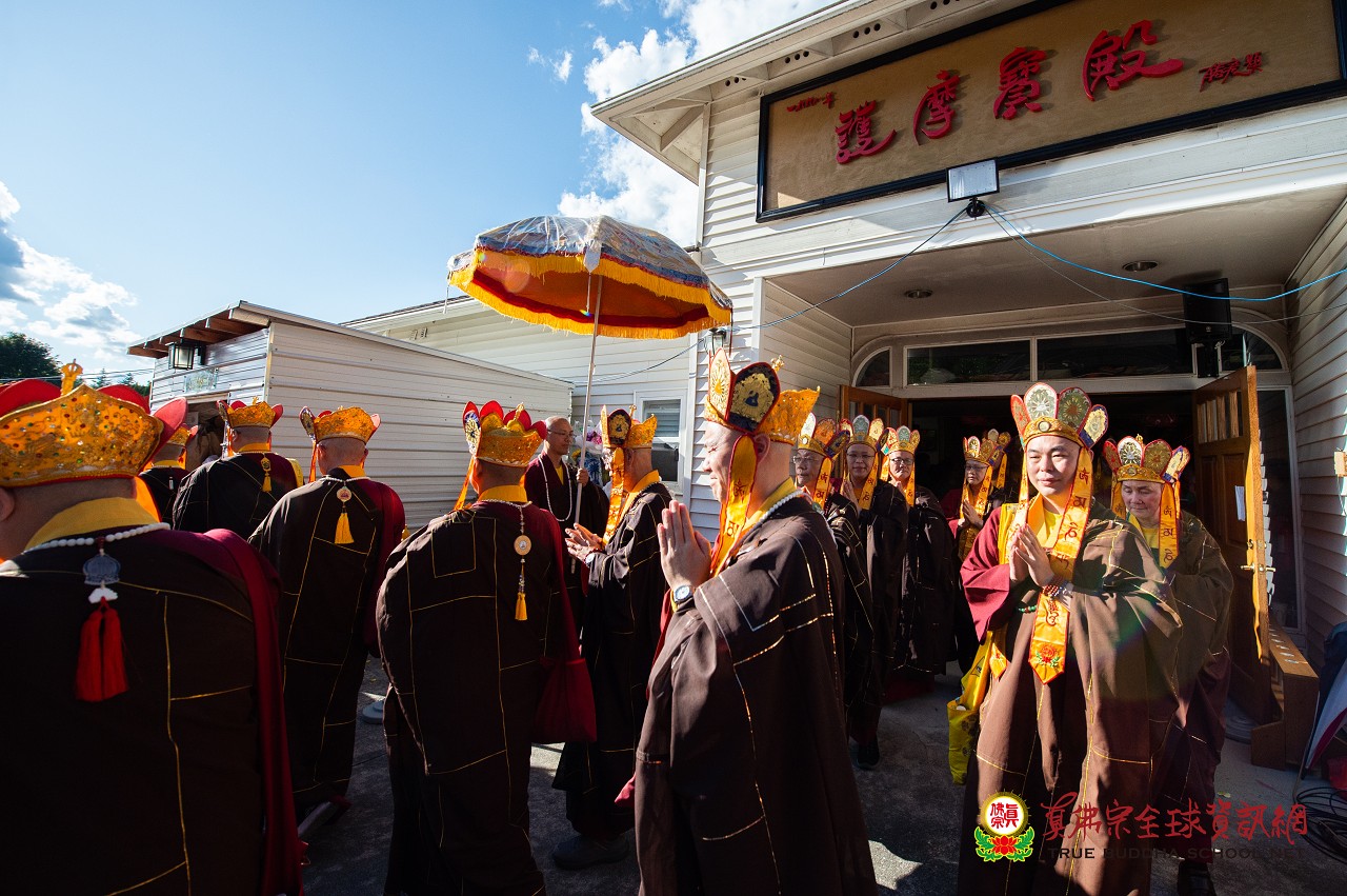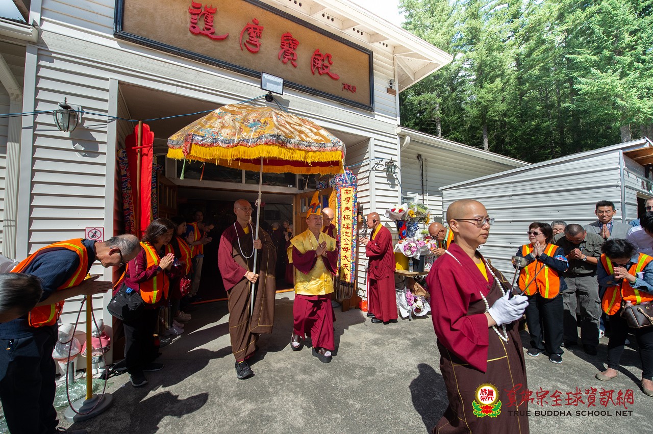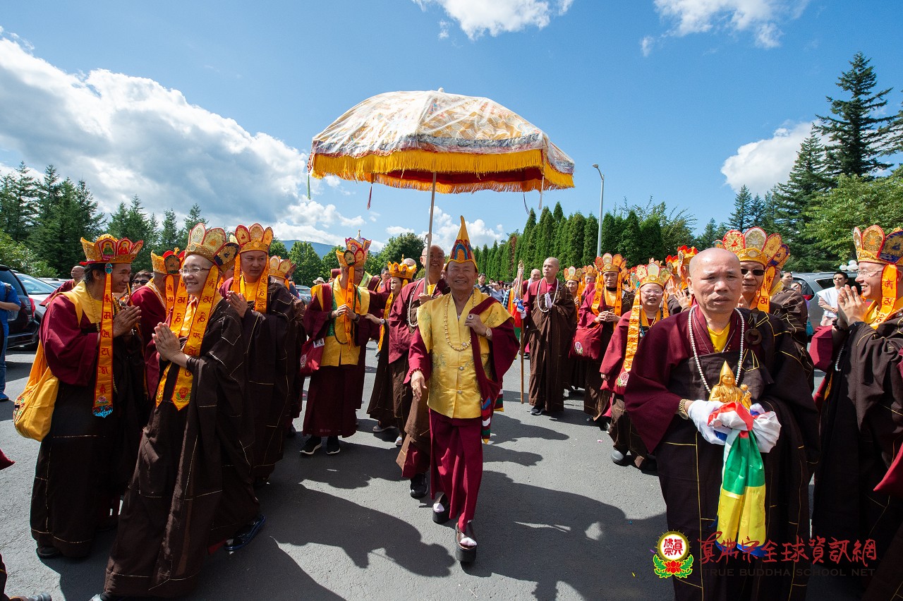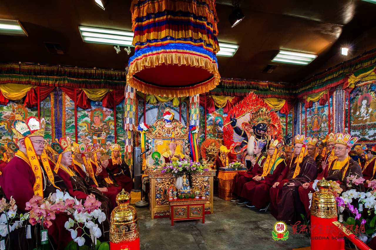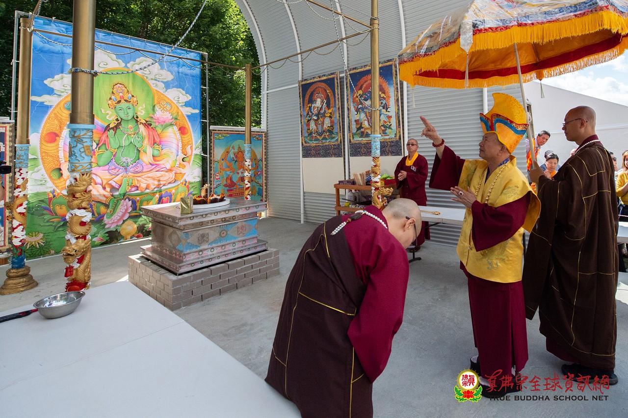 2019年8月25日下午兩點,蓮生法王盧勝彥聖尊於美國彩虹雷藏寺主壇救天災度母護摩大法會。法王開示時特別頂禮觀世音菩薩的化身、多羅菩薩綠度母、救天災度母、21度母。並發佈消息:下星期護摩主尊是金剛亥母,法會前午餐後將舉行生基儀式。生基的意義:人秉著氣而生,天有天氣,地有地氣,借著地氣的力量來加持生基物,讓修行產生好的磁場,讓本身精神能振作。風水有生、旺、死、絕。彩虹雷藏寺是七星落地大地理,被七座山圍繞。雙蓮境界靈骨塔在貝殼穴。地理,有來龍就有氣,氣停哪裡?最好的地方,就是穴。此地有砂手、有流水,東向西流、北方向南流。下面的砂石廠以後會變湖。法王強調,方向(磁場)對了,就產生活力。