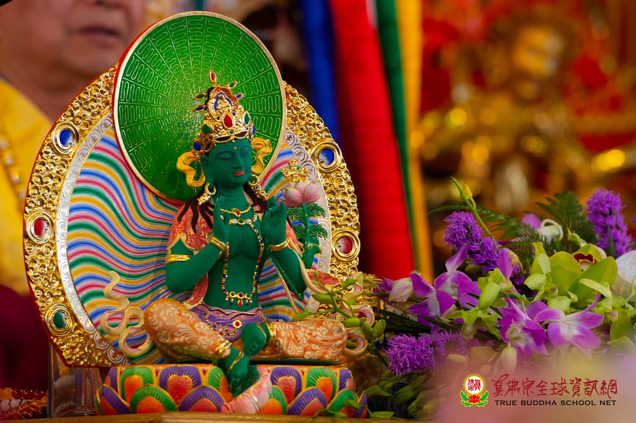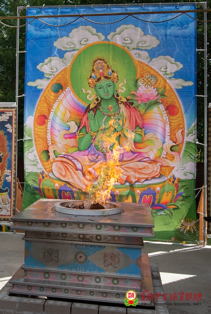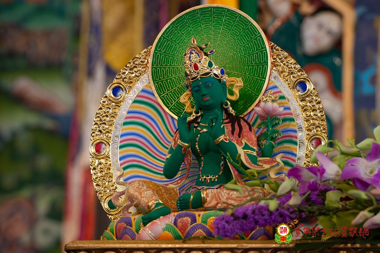 救天災度母,可救地震、水災、火災、風災。因為師尊在,西雅圖沒真正熱,也因為有救天災度母在。法王表示,法會時所有度母和空行母都下降。