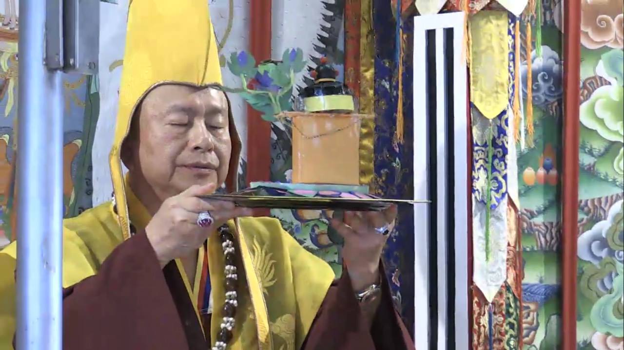 所謂黑寶冠法會就是十六世大寶法王戴上黑寶冠之後,所有弟子唸誦祂的咒語「嗡。噶瑪巴千諾。」,然後與大寶法王一起入三昧地。