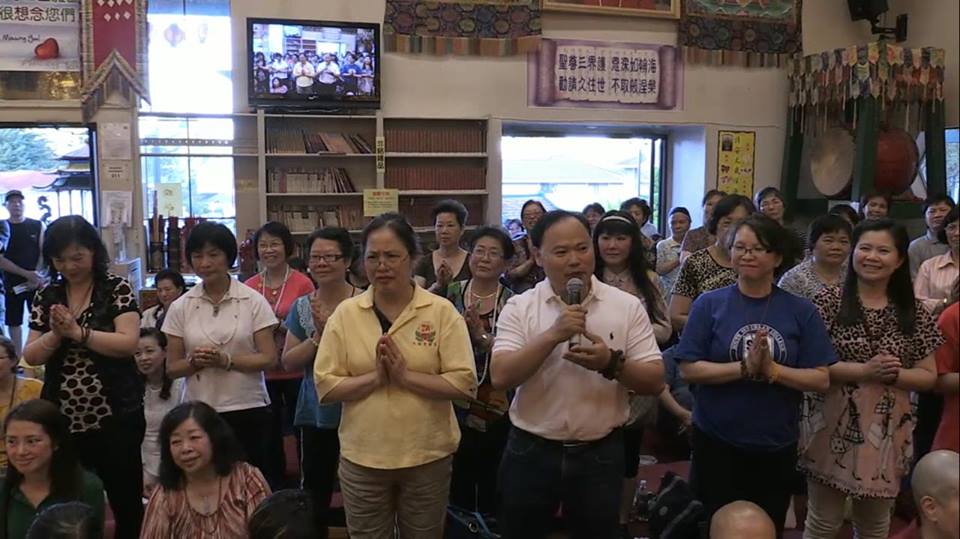 會後,蓮生活佛與大眾同唱佛號,並慈悲賜授「皈依灌頂」、加持「大悲咒水」及佛像文物加持「開光」,並為虔誠弟子一一摩頂加持,同修圓滿吉祥。