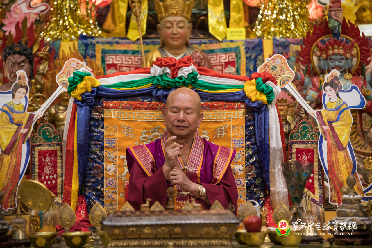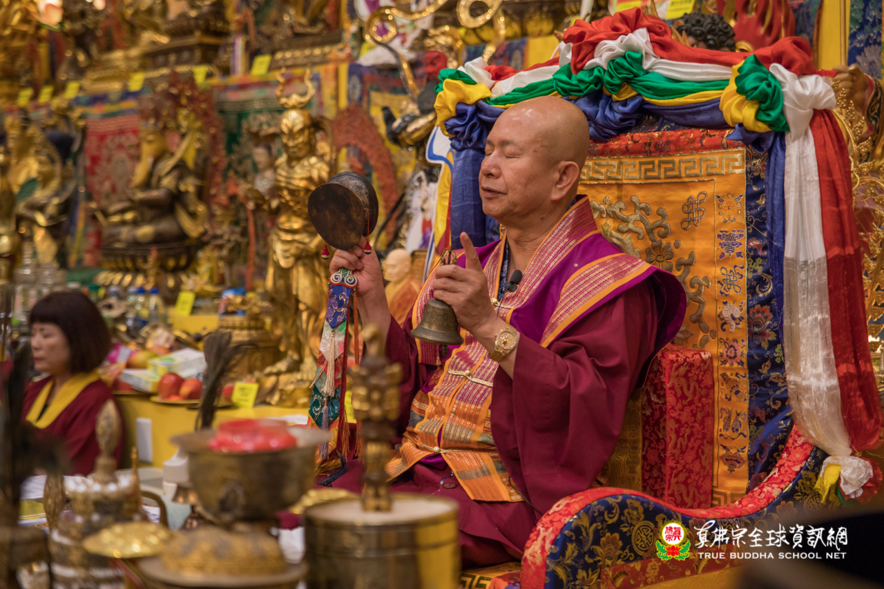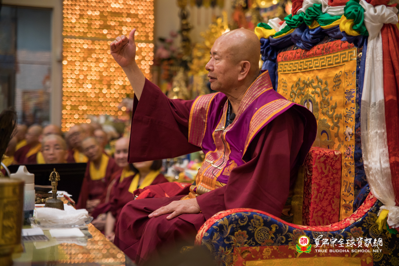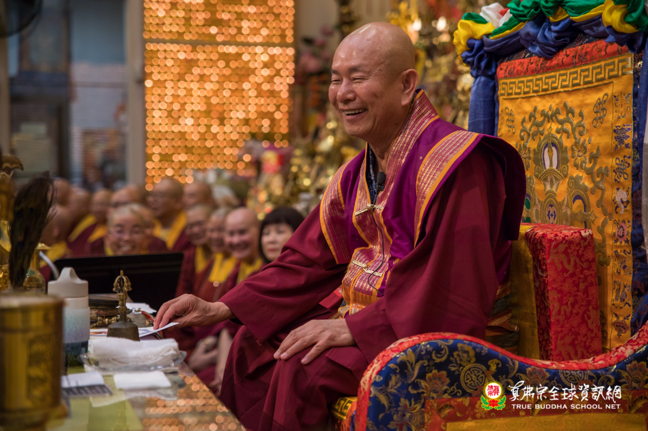 聖尊談到同修本尊阿彌陀佛時,談起最初得到瑤池金母啟示開天眼後,去了台中「太虛紀念館」,聽李炳南居士開示講大勢至菩薩念佛圓通章,在那裡先修學淨土宗,學會唱唸阿彌陀佛聖號,修淨土最主要的口訣是「憶、持」兩個字。在每次修法唸「南摩三十六萬億一十一萬九千五百同名同號阿彌陀佛」和迴向唸的「願同念佛者,同生極樂國」都是淨土的方式,密教原本只有持咒,真佛宗的修持可以說是融合密教和淨土宗的修法,有持咒又念佛是真佛宗特別獨創的,永明延壽禪師曾說「有禪有淨土,猶如戴角虎」,我們真佛宗是「有密有淨土,猶如戴角虎」,老虎還長角,表示更加厲害了!