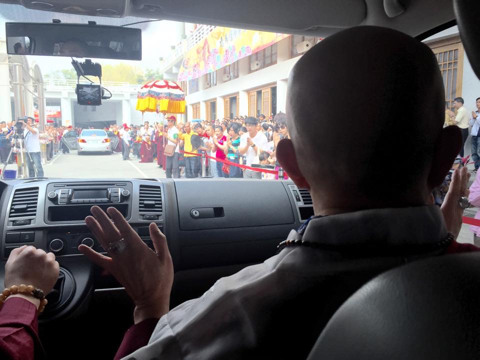 2015年4月25日蓮生活佛 盧勝彥法王、蓮香師母抵達〈台灣雷藏寺〉,受到逾萬信眾熱烈歡迎。