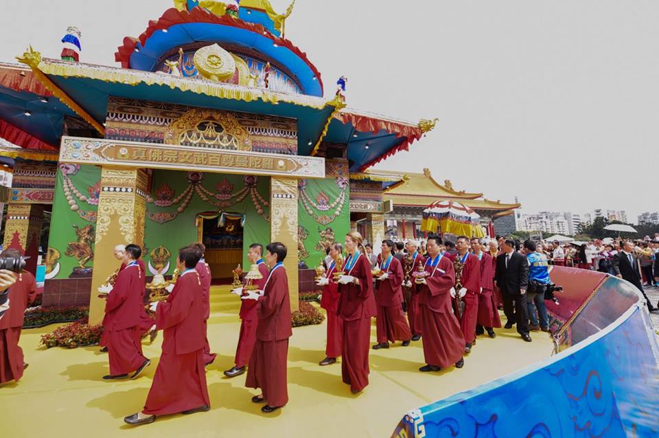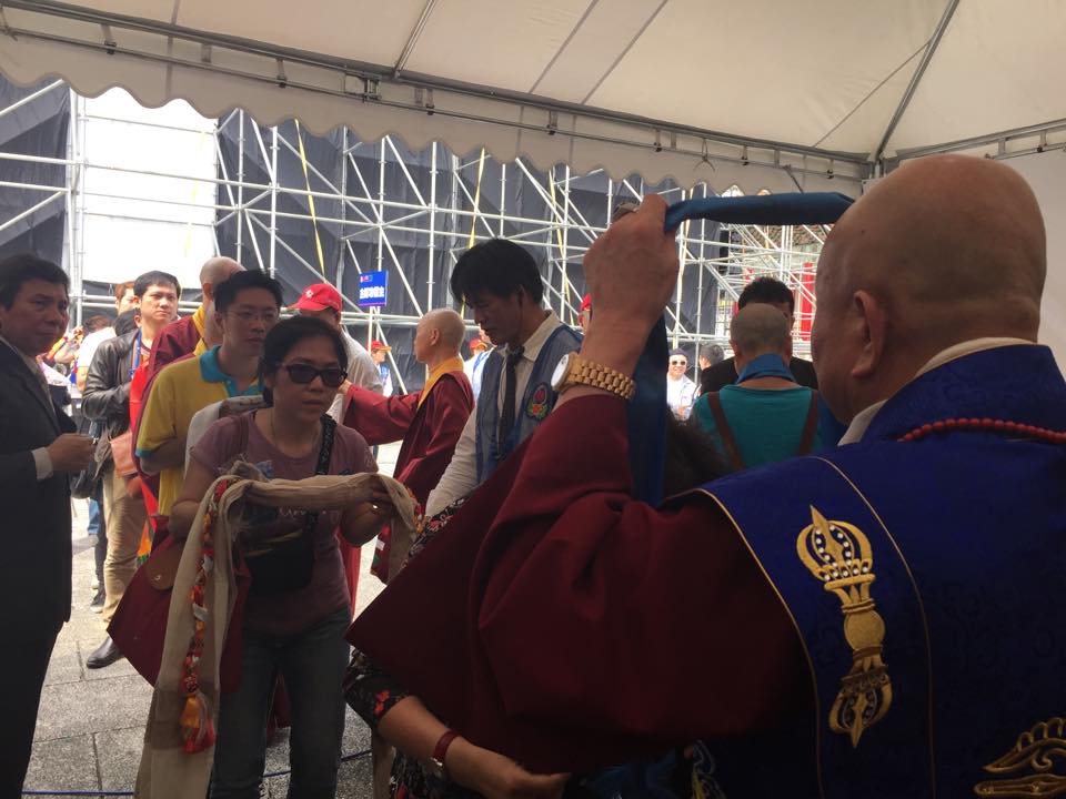 11:00蓮生活佛,蓮香師母在莊嚴盛大的迎接儀式中抵達會場。