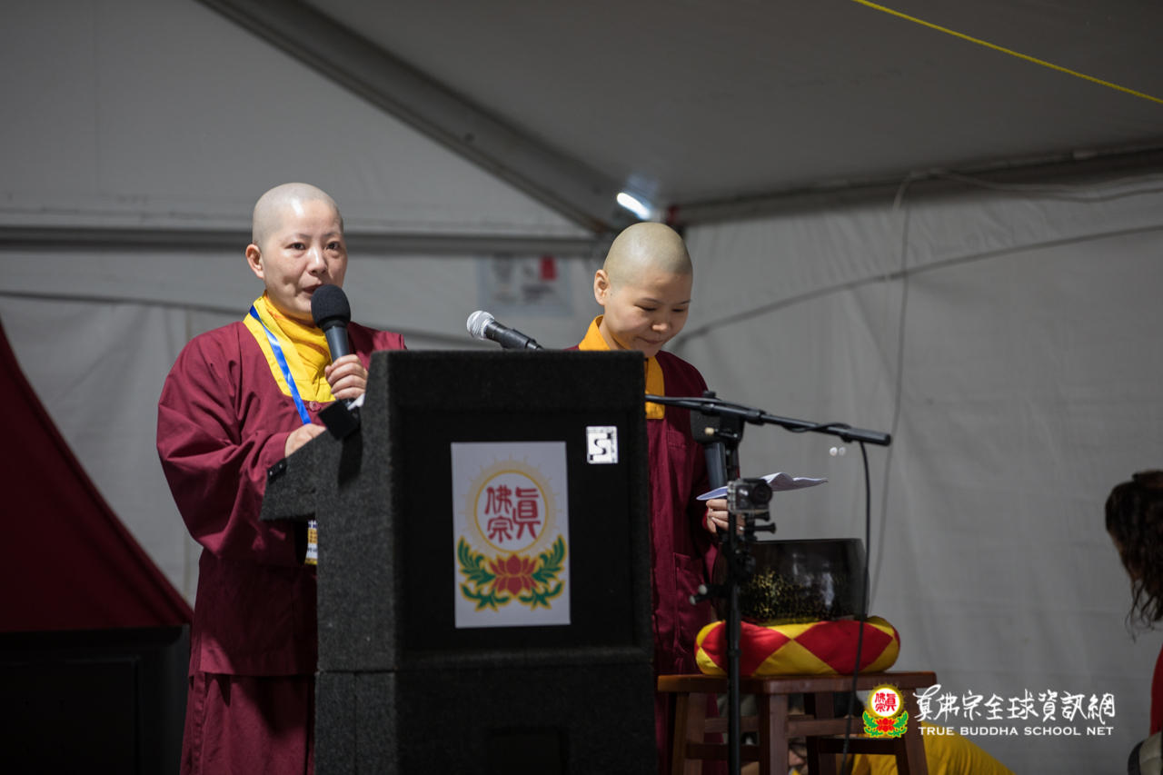 當天的第一堂課由蓮聞上師開講《真佛密法的實修與運用:何為回歸「摩訶雙蓮池」的妙法、當如何實修,從心地上下功夫呢?》上師以一皈依為主,上師説:真佛弟子跟隨根本上師所教的法,一法深入,好好的實修,不要太在意他人的心得,可以拿來參考,也可以相互切磋,互相鼓勵,要跟隨師尊發大願,永不退轉,往生摩訶雙蓮池,發大願也是一皈依的表現。書是師尊的心,也是宇宙的真理,要每日反省,如有犯戒要馬上懺悔,要供養師尊。得到三根本的加持力是永恆的,得到地上的就會失去天上的,常修三密清淨,到達彼岸,自修、自助,諸天佛菩薩一定會加持。修行人一定要嚴守戒律,要了解自己的心、守住自己的心,保持身口意清淨,三業轉成三密,常唸十四大戒及事師法五十頌,把法融入生活中,一皈依最重要。
