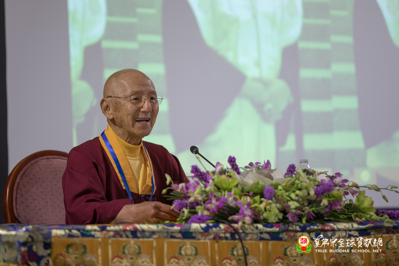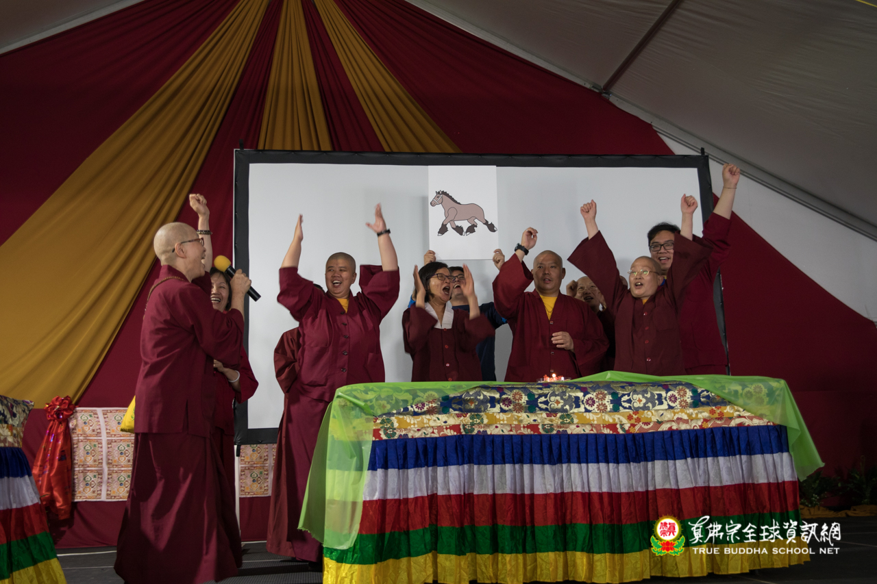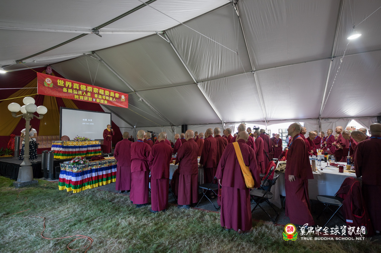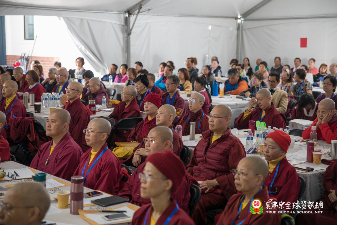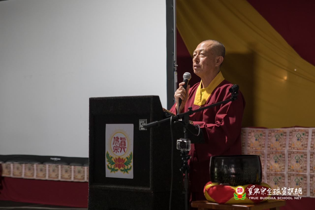 最後再由㑹長蓮花程祖上師致詞:上師說,在法會期間,宗委會為了要籌募款項,特別準備了師尊法像讓大家請購,竟然有人不認識宗委會,上師問大家都認識各位處長不?有問:「你們都愛我們宗委會嗎?」(大家抱以熱烈掌聲,大喊「愛」!)宗委會肩負很重大的責任,而建設宗派是各級弘法人員及各道場負責人的責任,會長希望大家一起來分擔,一起來規劃。真佛行者做任何事要馬上行動,要學師尊的精神。會長強調,在坐的每一位是宗派的希望,所以有了解自己、改變自己,希望各處長任務大家也要了解。希望以後大家隨時能找到宗委會,大家的心和宗委會的心是相連的。在台灣有一位上師捐地建宗委會辦公室,以後希望大家都來建設宗派,鼓勵大家來贊助宗委會,因為宗委㑹需要很多資糧。最後會長感謝彩虹雷藏寺的團隊、及幕後團隊,希望以後大家一起來建設,並讓大家給于他們熱烈掌聲,大家預約今年11月30日,12月1日在台灣再相聚。