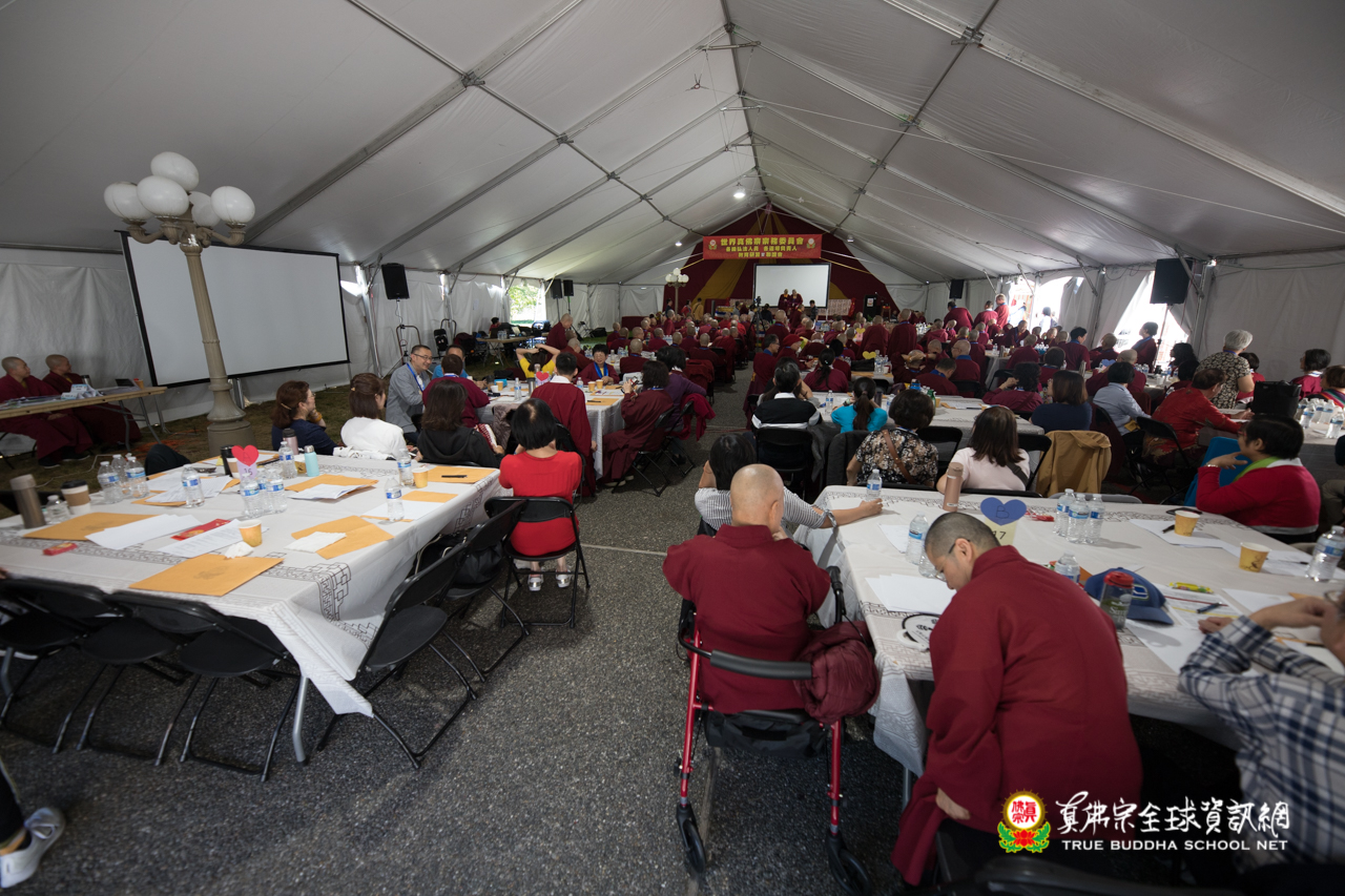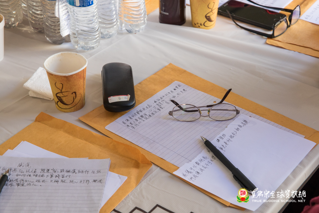 上師用4句「咒語」,2個「手印」,教大家用來招待香客,第一句是「請」(手勢用「於願印」),第二句是「謝謝」(用十法界合掌印),第三句是「對不起」,第四句是「阿彌陀佛」,如果看到有人用「降伏印」指東指西,要糾正他,請他改用「於願印」。對待香客要明白他人的需求,用肢體語言讓客人感受到。心和念頭是修行,非常重要,我們要把握當下的因緣,希望真佛大家庭能像磁鐵般吸引全世界的有緣人。上師説現宗委會特意安排在11月30日及12月1日台灣雷藏寺密總特別舉辦知客研習班,是邀請外面資深的教師来授課,希望大家都能來參加。