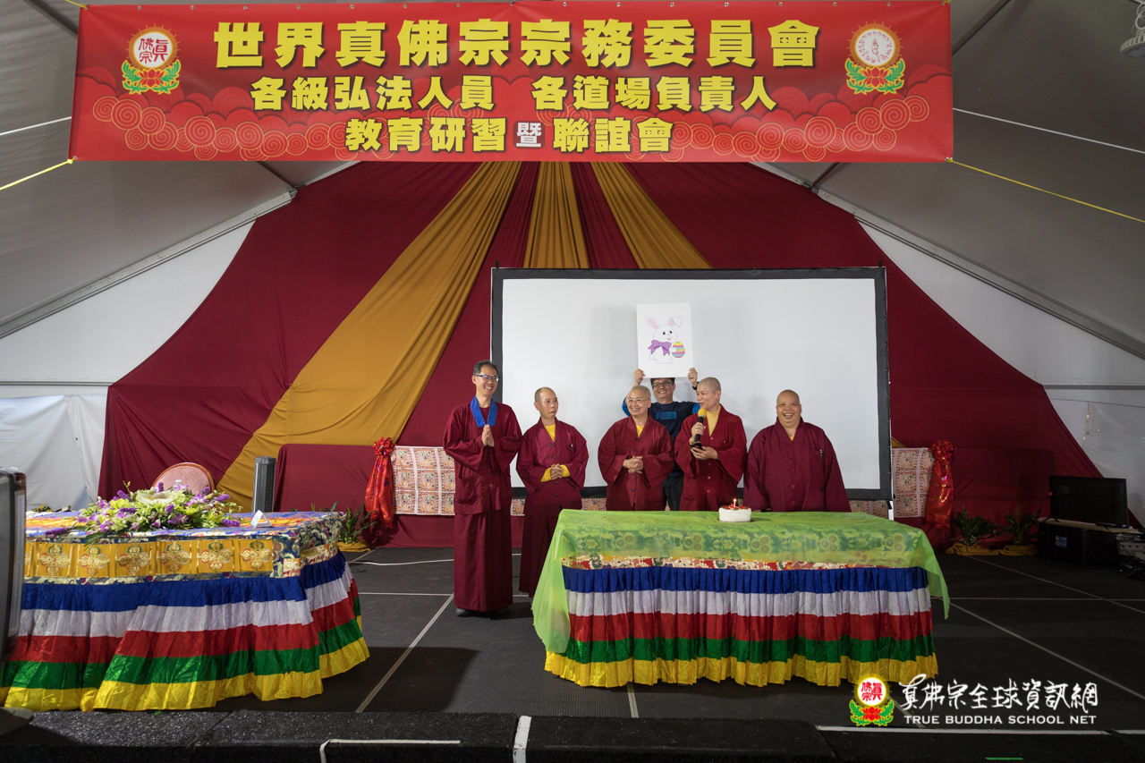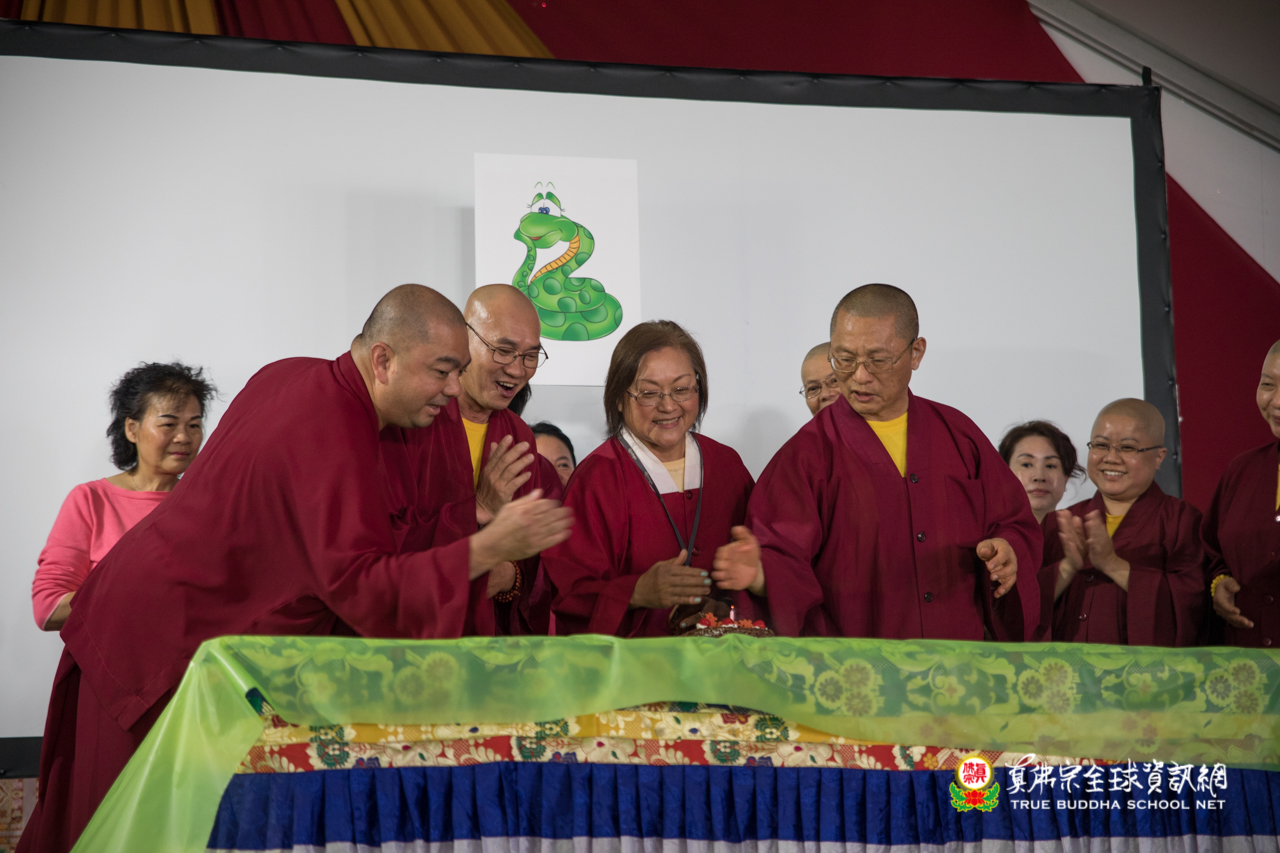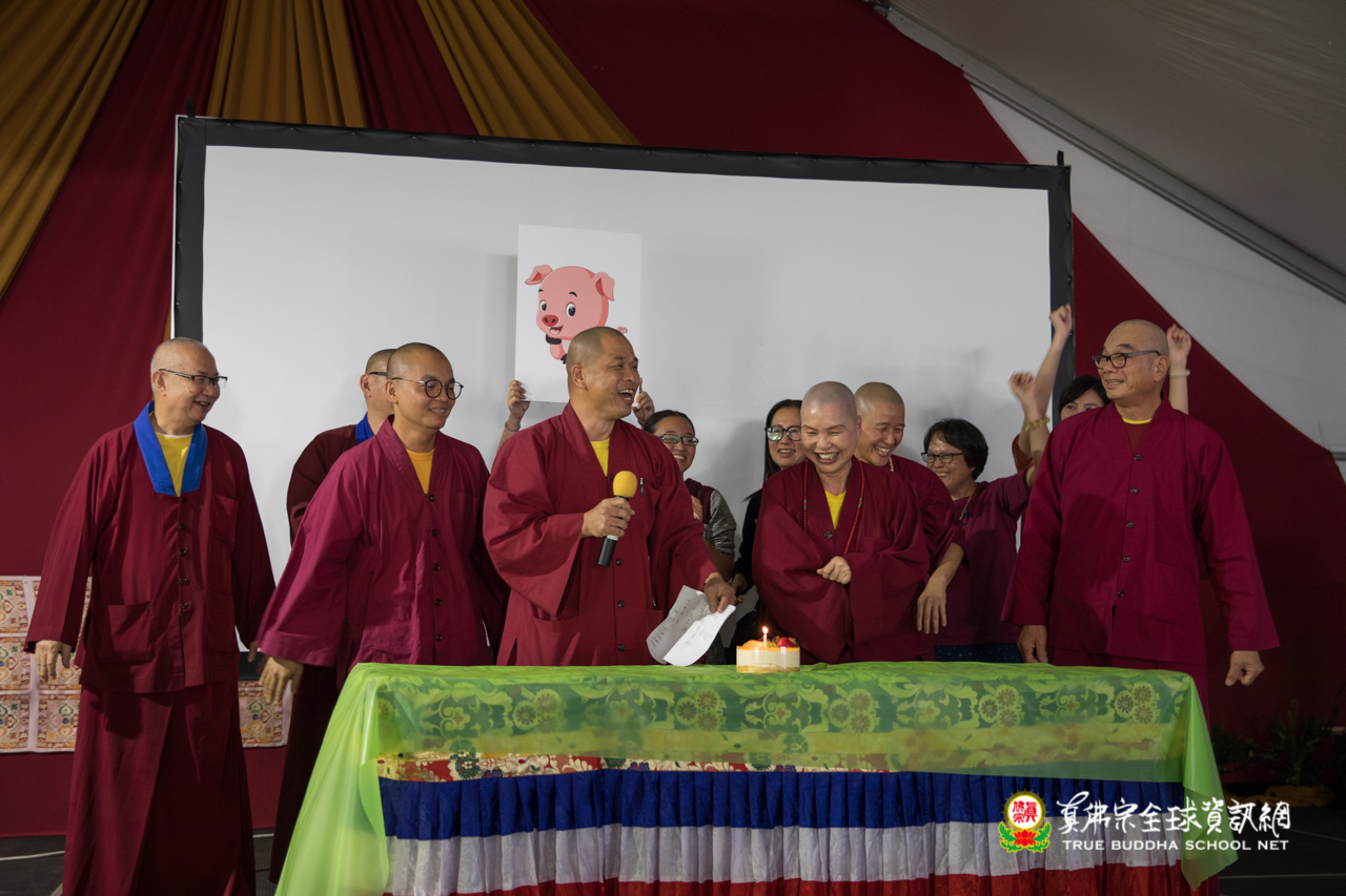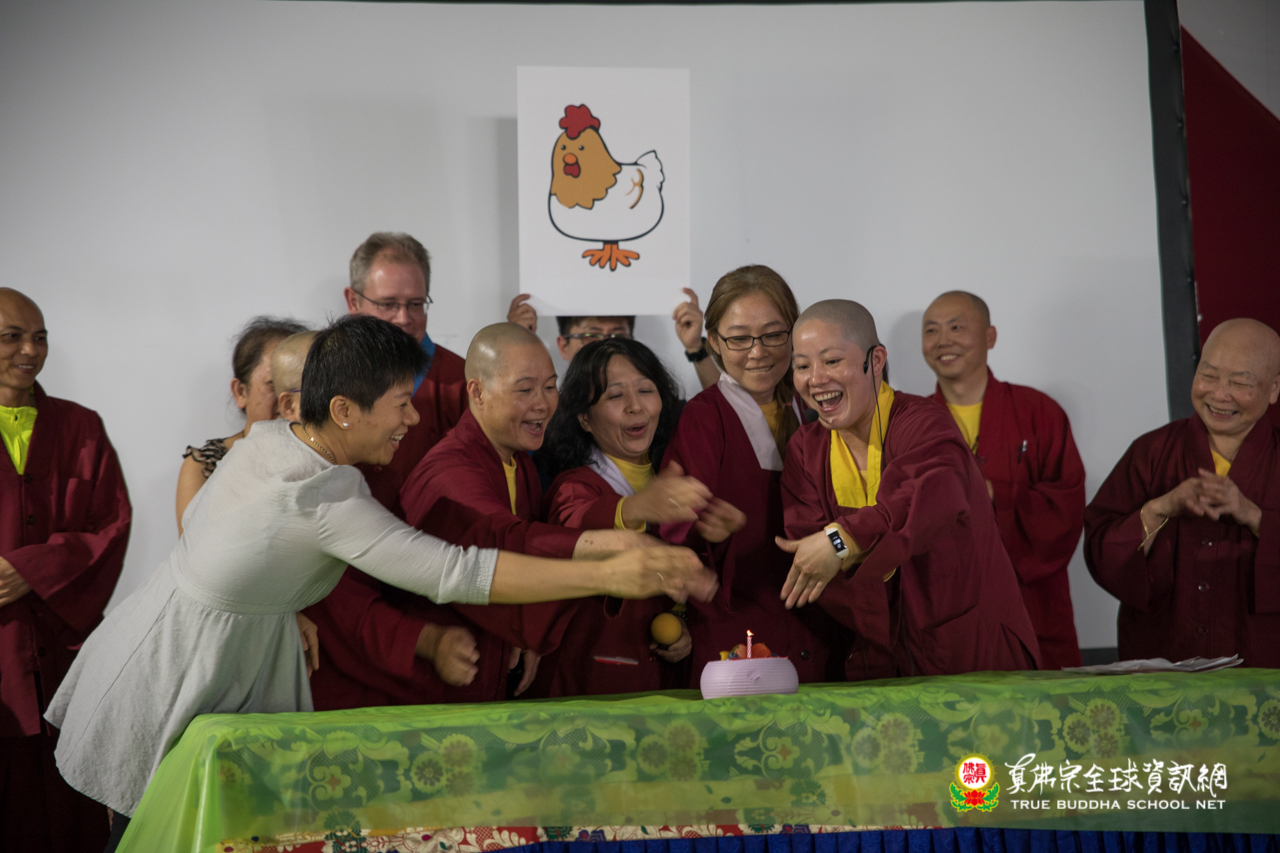 這次宗委會為了慰勞各級弘法人員及各道場負責人,最後還安排生日慶生會,特別訂製了精巧可愛的生肖生日蛋糕,為所有弘法人員及各道場負責人慶生,從生肖屬鼠的到生肖屬豬的,人人有份,都上台賀獻才藝表演,熱鬧非凡,接著先頒發結業証書,再由會長蓮花程祖上師頒發2019年新任講師及助教証書,場面太感人了!