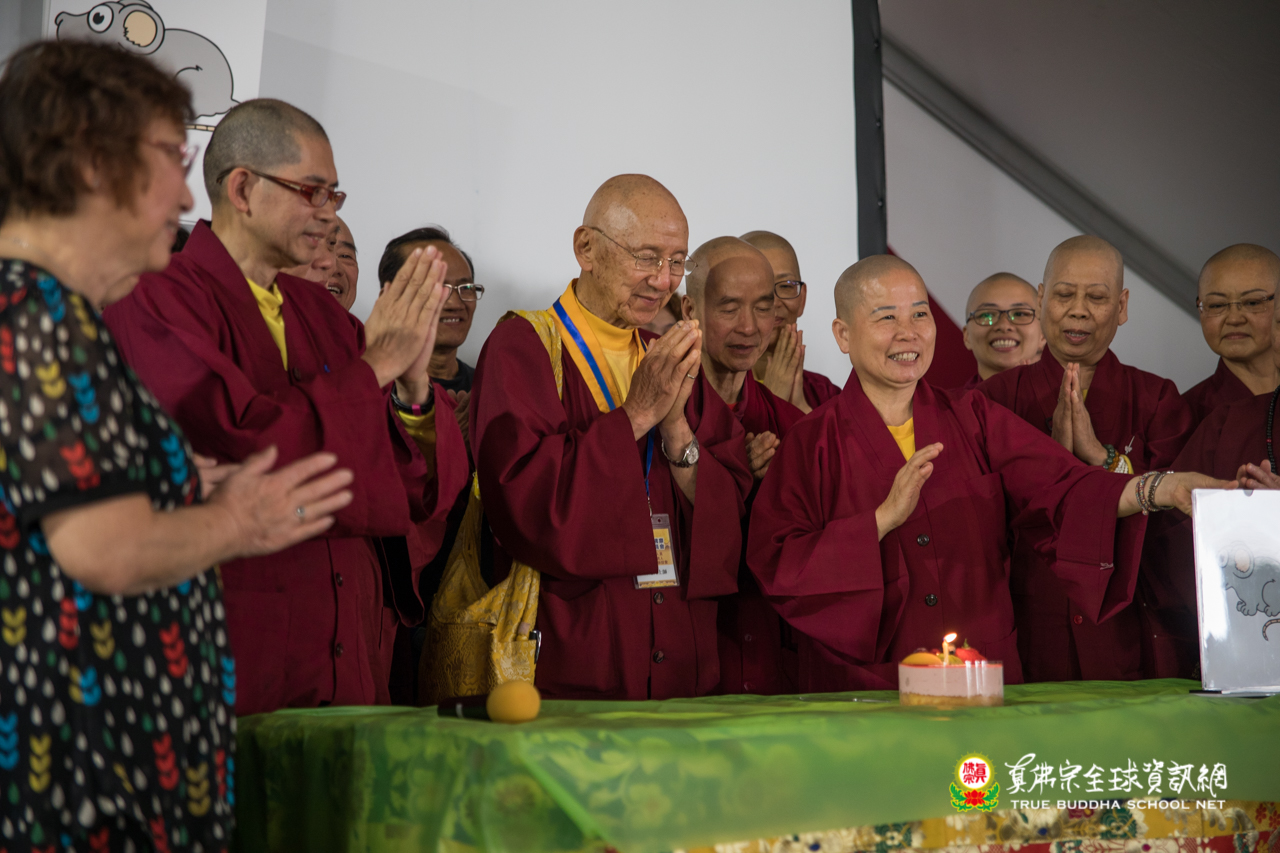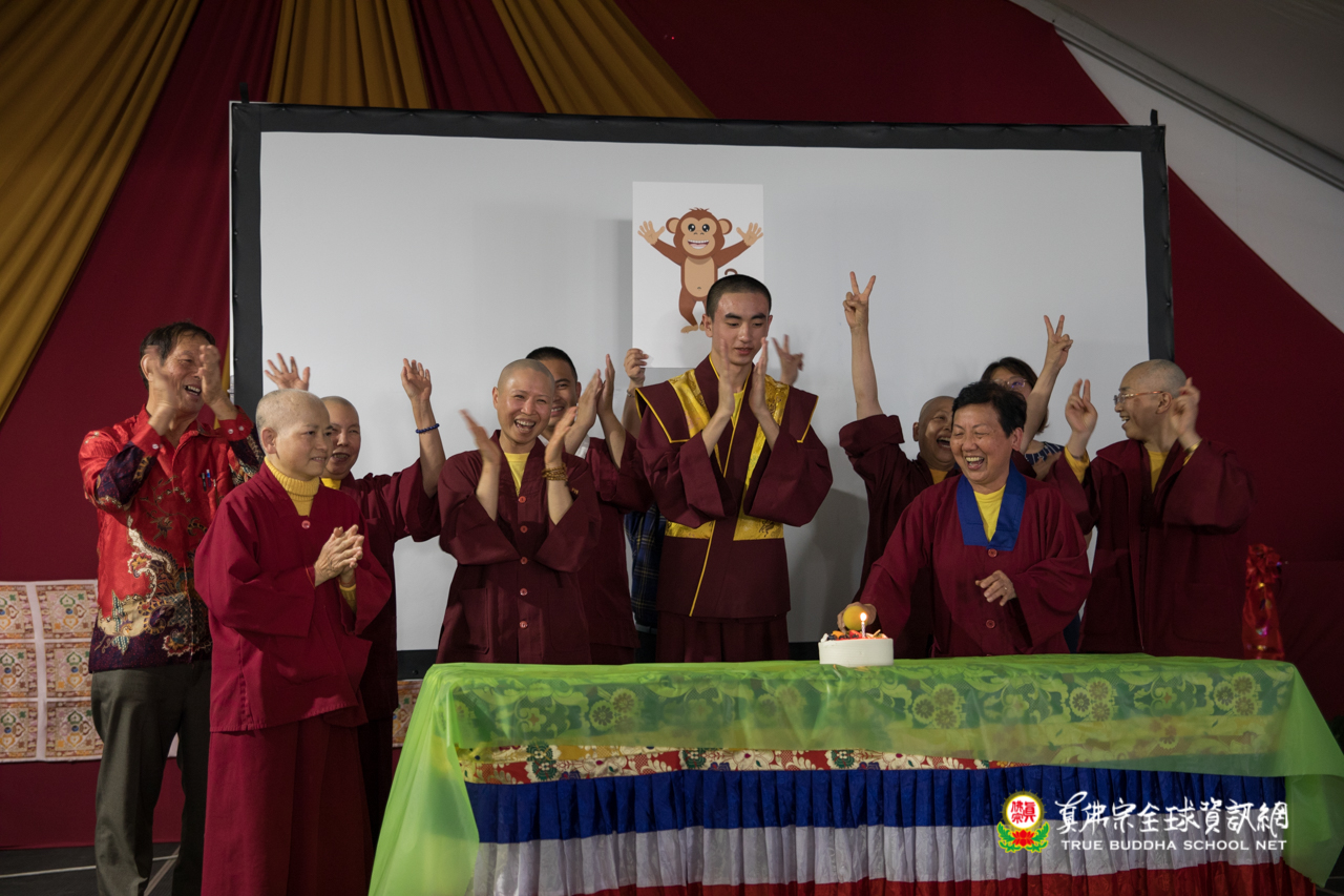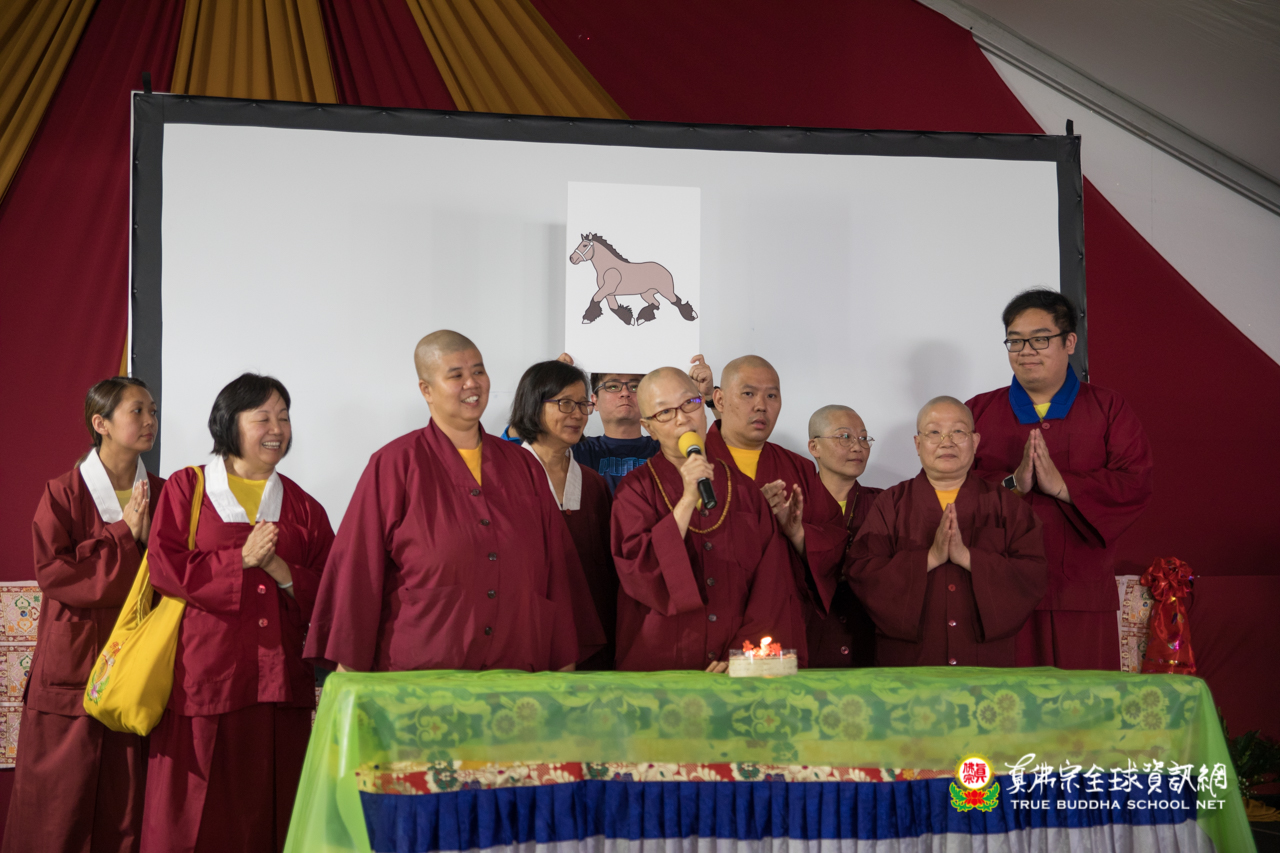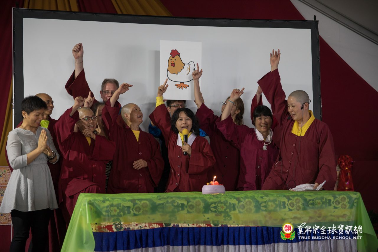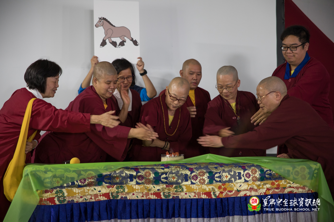 這次宗委會為了慰勞各級弘法人員及各道場負責人,最後還安排生日慶生會,特別訂製了精巧可愛的生肖生日蛋糕,為所有弘法人員及各道場負責人慶生,從生肖屬鼠的到生肖屬豬的,人人有份,都上台賀獻才藝表演,熱鬧非凡,接著先頒發結業証書,再由會長蓮花程祖上師頒發2019年新任講師及助教証書,場面太感人了!