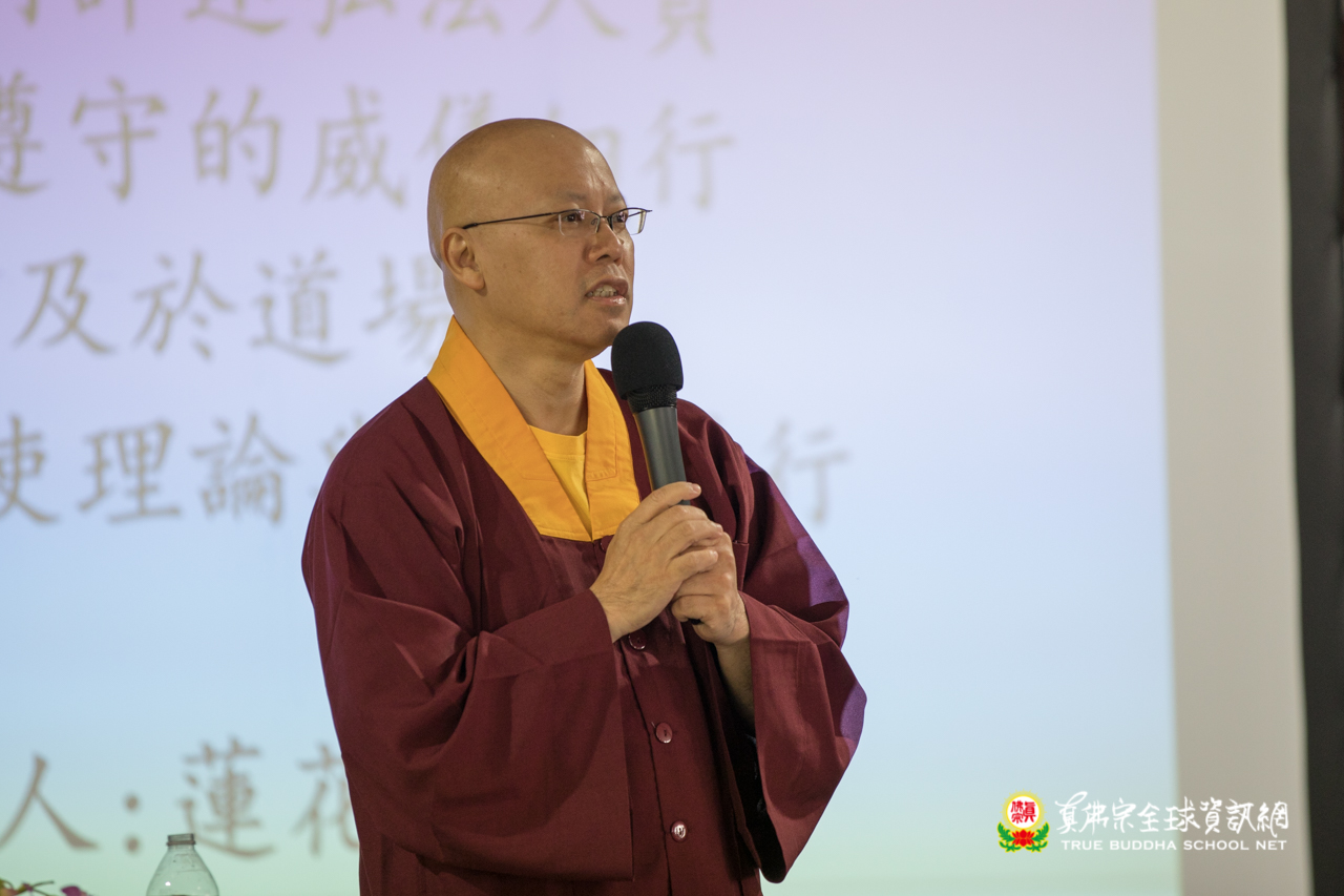第二堂課由蓮花常仁上師主講《威儀:實例詳述弘法人員應遵守的威儀細行及於道場中如何使理倫與實踐並行?》
