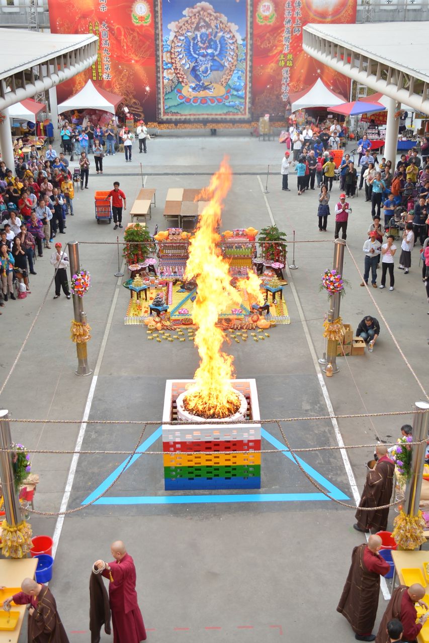 2015年2月28日蓮生活佛 盧勝彥法王在〈台灣雷藏寺〉主持「喜金剛護摩法會」暨賜授「喜金剛不共大法」灌頂;講授【大圓滿九次第法】。