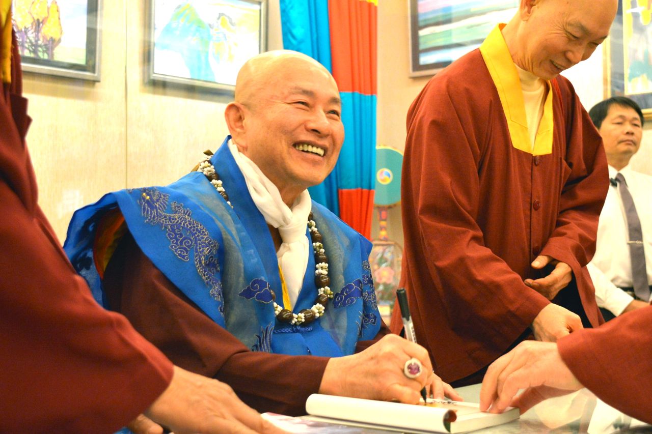 接著,蓮生活佛首先宣佈師母蓮香上師將於新春法會與大家見面;以及宣佈巴西蓮訶上師推薦蓮伽法師為金剛阿闍黎。
