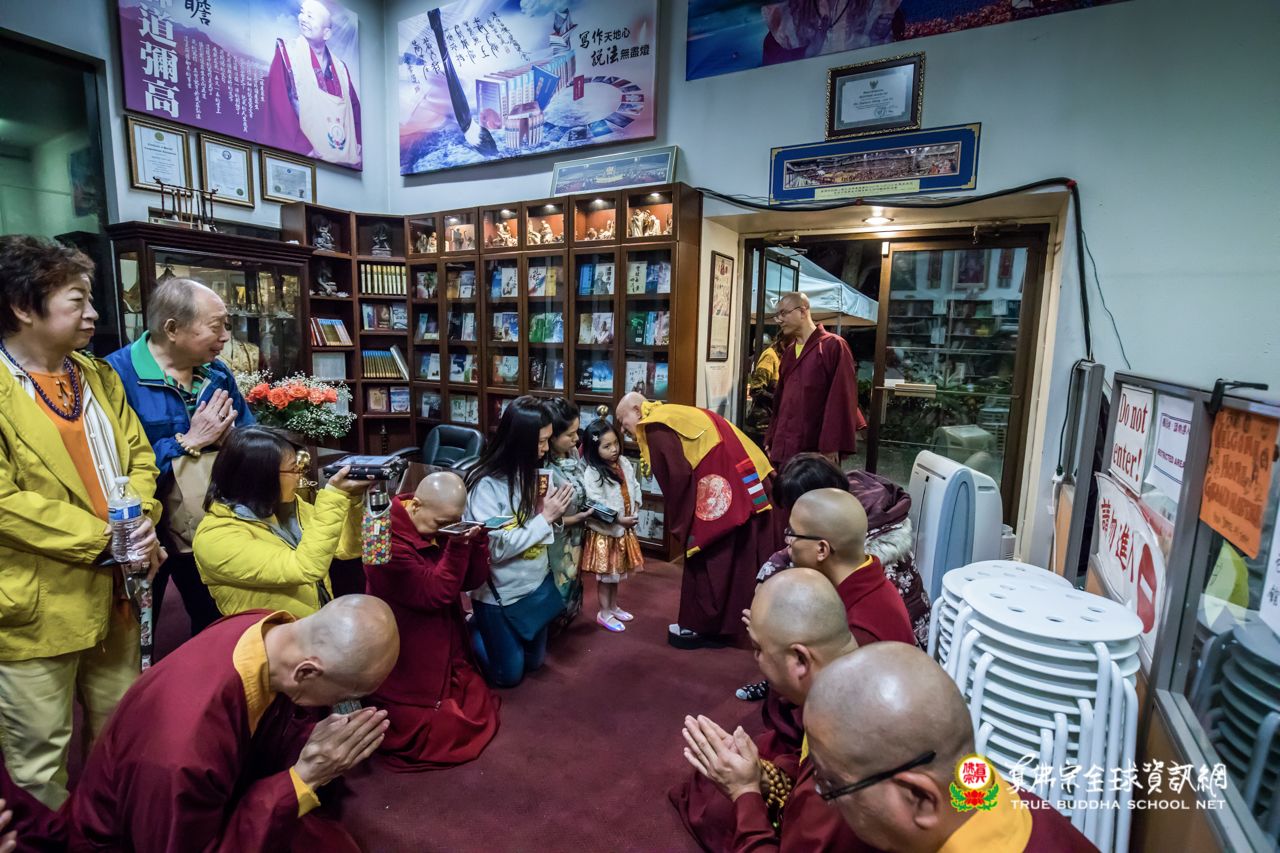 精采開示結束後,聖尊為求皈依的信眾賜授灌頂、加持大悲咒水,以及開光佛像。離開雷藏寺前,聖尊仍慈悲的為大眾摩頂加持滿願。步出雷藏寺外,入秋的夜晚細雨綿綿,雨絲沁涼,內心一片溫暖,感恩聖尊如此無私、透徹的教導,弟子感恩之情無法言喻。