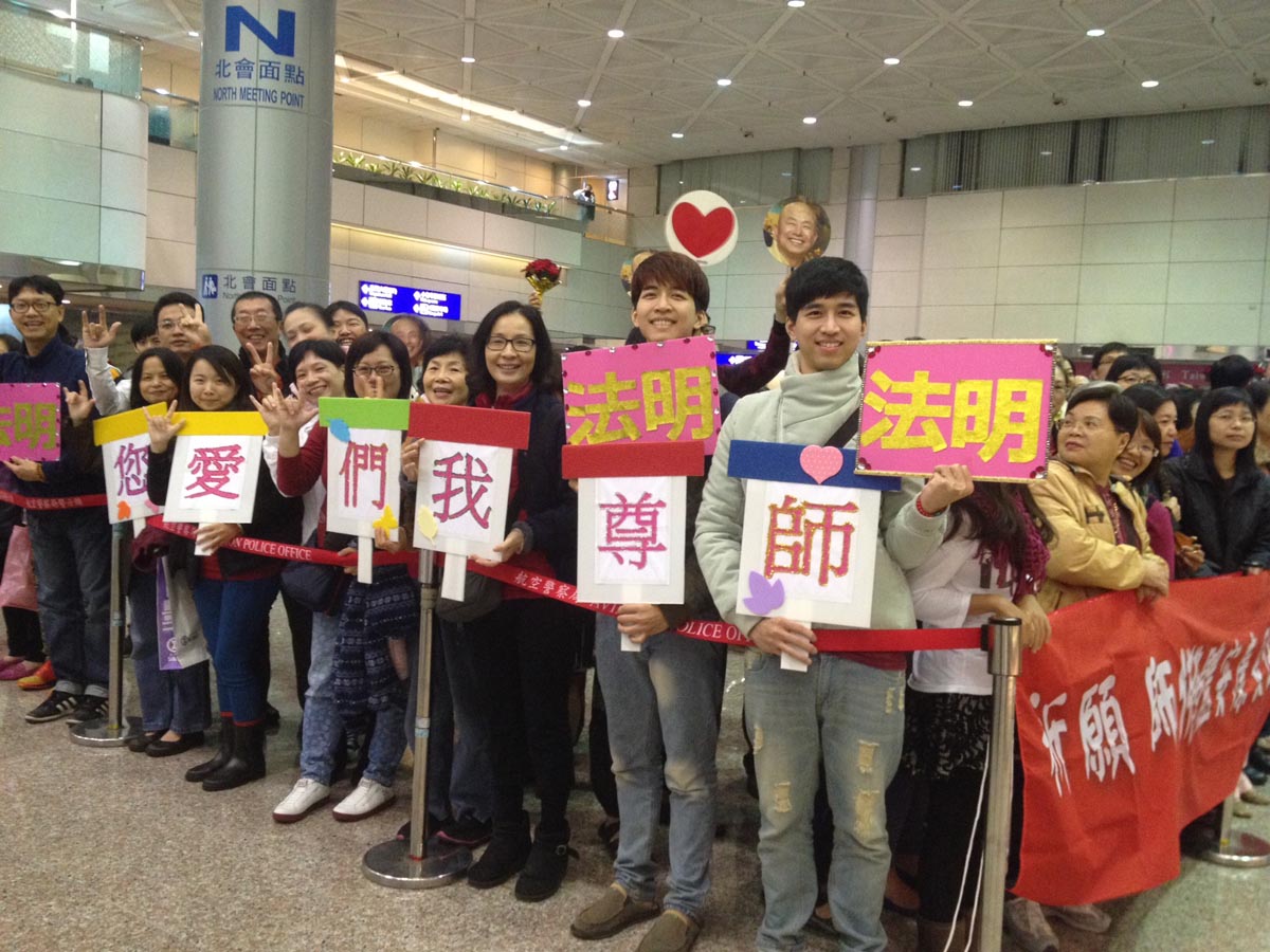 2014年11月16日蓮生活佛 盧勝彥返台弘法,逾千善信擠爆「桃園國際機場」,接機場面浩大