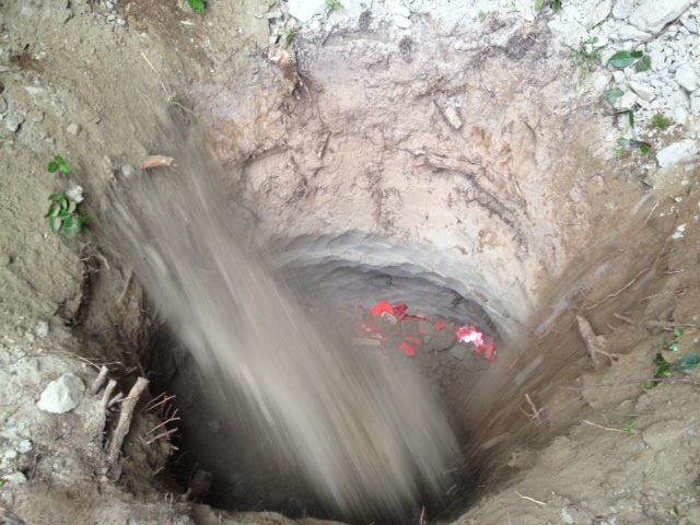 將生基物倒入後,再用土掩埋