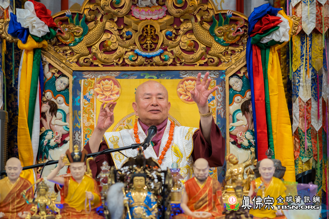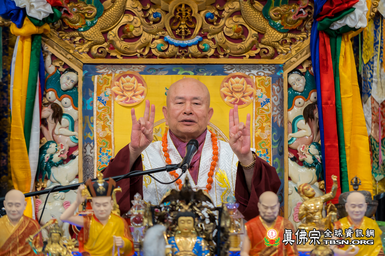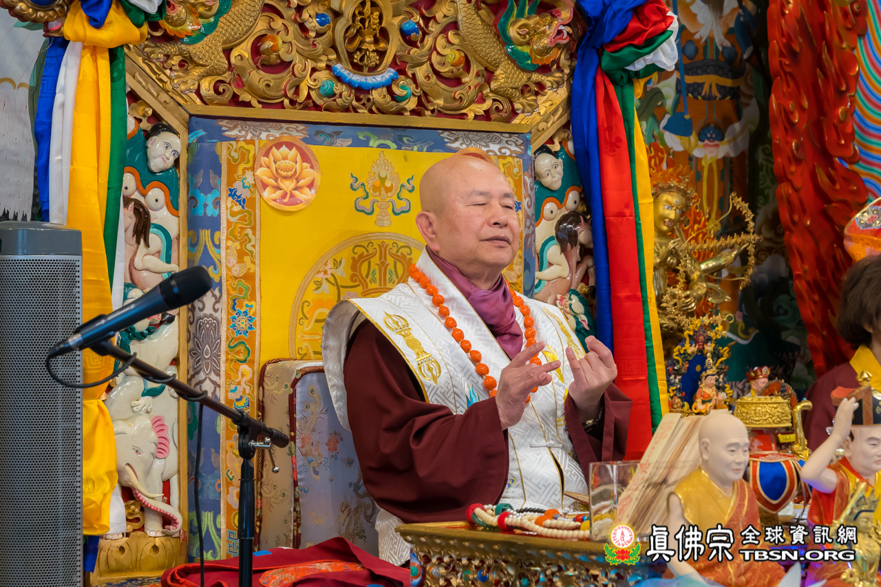 「今天謝謝網路上的同門,增加我們的光彩,雖然我沒有看到你,但是你總是看到我,增加我們這裡的光彩」,法王詼諧地說,「師尊的對面椅子比人還多,空椅子比人還多,這是從來沒有過,我活了76歲從來沒有見過的現象,這一生算是非常精彩了」。