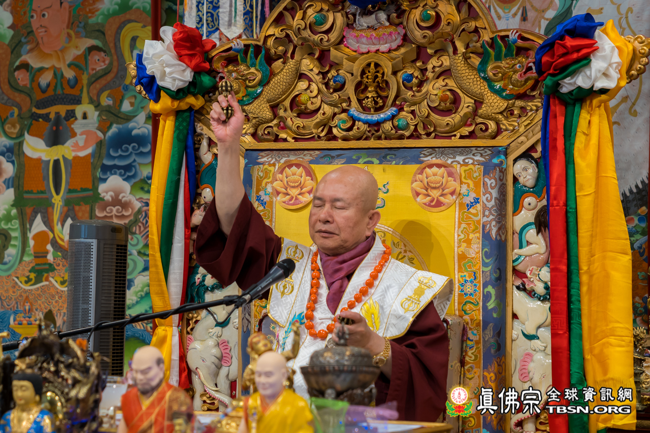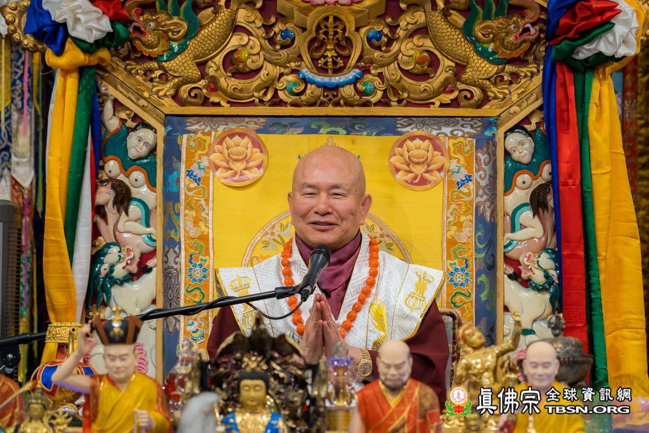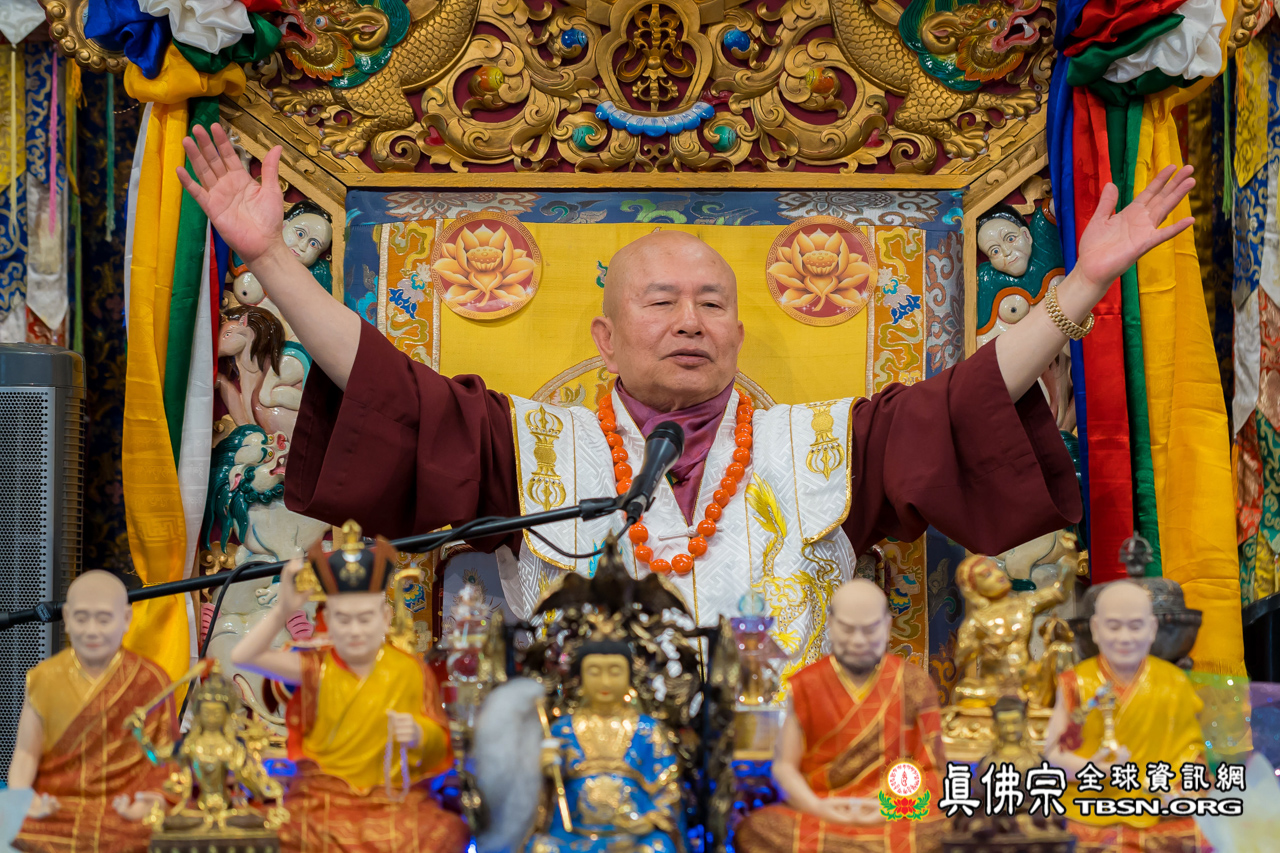 「今天謝謝網路上的同門,增加我們的光彩,雖然我沒有看到你,但是你總是看到我,增加我們這裡的光彩」,法王詼諧地說,「師尊的對面椅子比人還多,空椅子比人還多,這是從來沒有過,我活了76歲從來沒有見過的現象,這一生算是非常精彩了」。