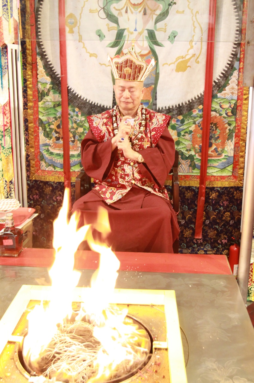 2014年9月21日下午三時,蓮生活佛盧勝彥法王於〈彩虹雷藏寺〉主持「勾財天女護摩法會」暨講授「大圓滿九次第法」。