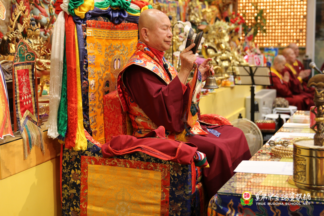 聖尊精闢的法語開示後,雷藏寺唱誦組法師們帶領大眾唱誦阿彌陀佛聖號,然後,聖尊為求皈依的信眾賜受灌頂,加持大悲咒水,開光佛像。臨行前,聖尊還摩頂加持大眾。感恩根本上師慈悲將佛法的法流灌溉每一位眾生的心靈,讓我們能心領神會佛法的真實見!
