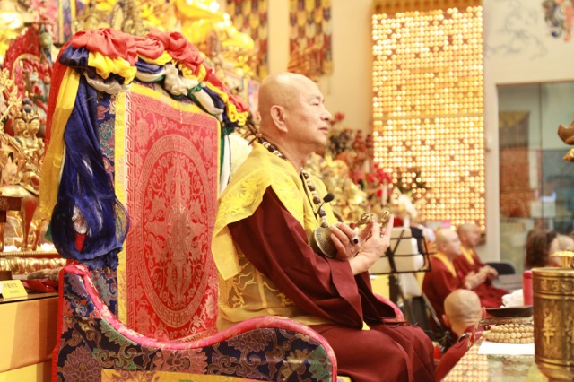 開示完,大眾抱以熱烈掌聲,感恩蓮生法王的寶貴開示,最後,蓮生活佛 盧勝彥法王與大眾同唱佛號,並慈悲賜授「皈依灌頂」、加持「大悲咒水」及佛像文物加持「開光」,同修活動在蓮生法王一一為眾弟子們摩頂加持中,圓滿吉祥。